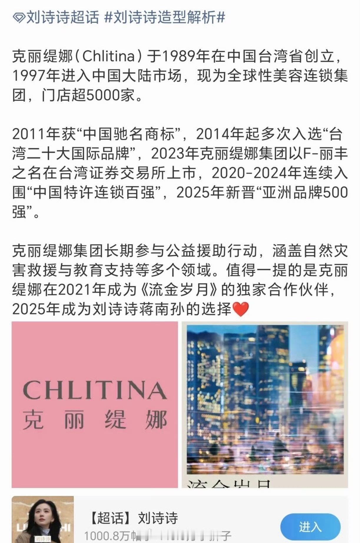 刘诗诗新商务来了,克丽缇娜2021年就成为流金岁月的独家合作伙伴,缘分呐