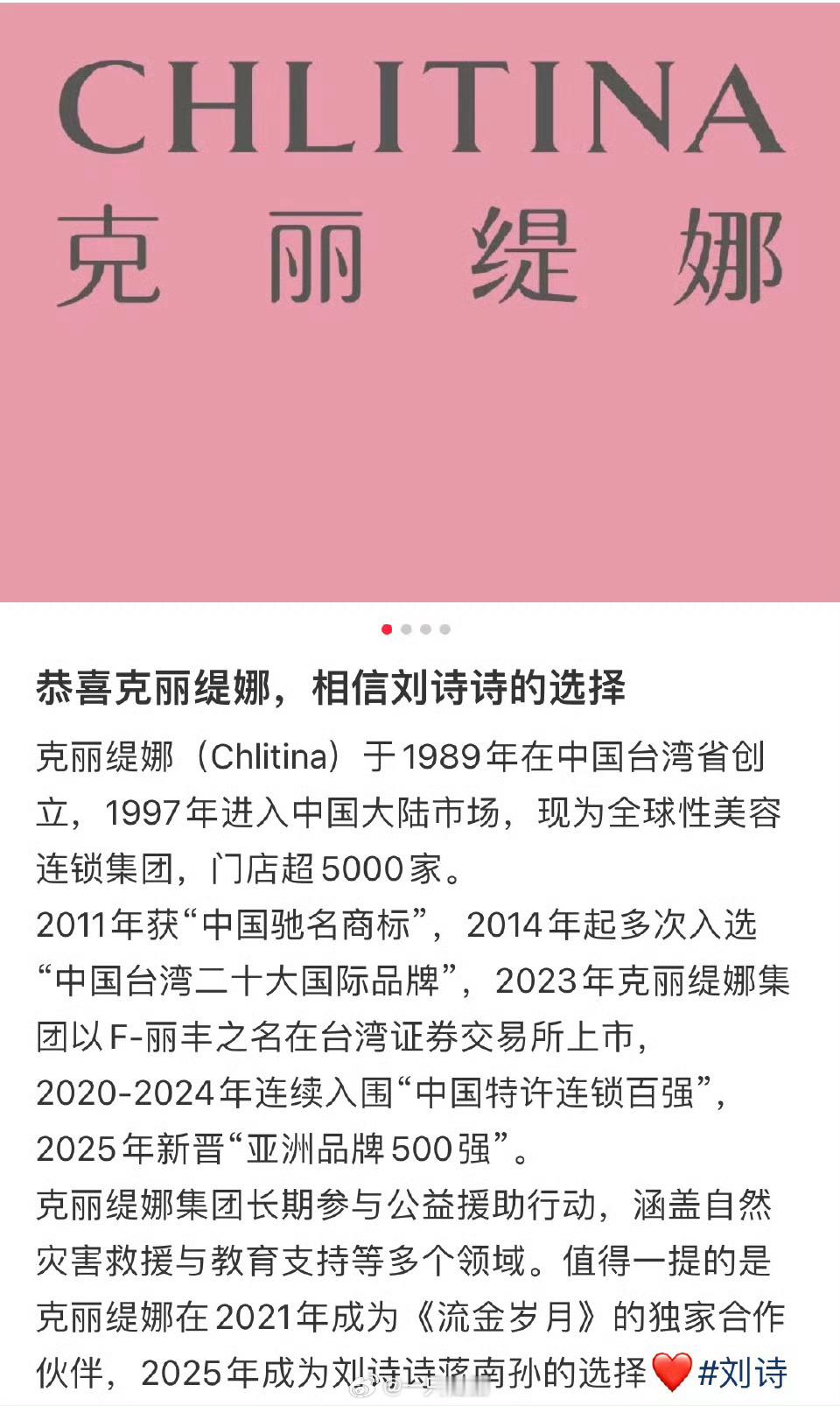 刘诗诗克丽缇娜全球代言人官宣节奏