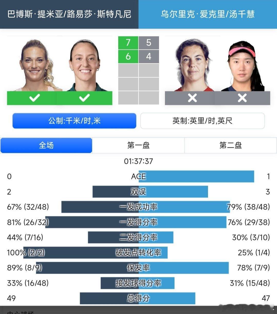 汤千慧🇨🇳/爱克里🇳🇴5-7/4-6不敌巴博斯🇭🇺/斯特凡尼🇧🇷,无缘晋级决赛。中国球员在宁波站全部被淘汰。汤千慧广州搭档阿普尔顿双打,继续加油![加油]