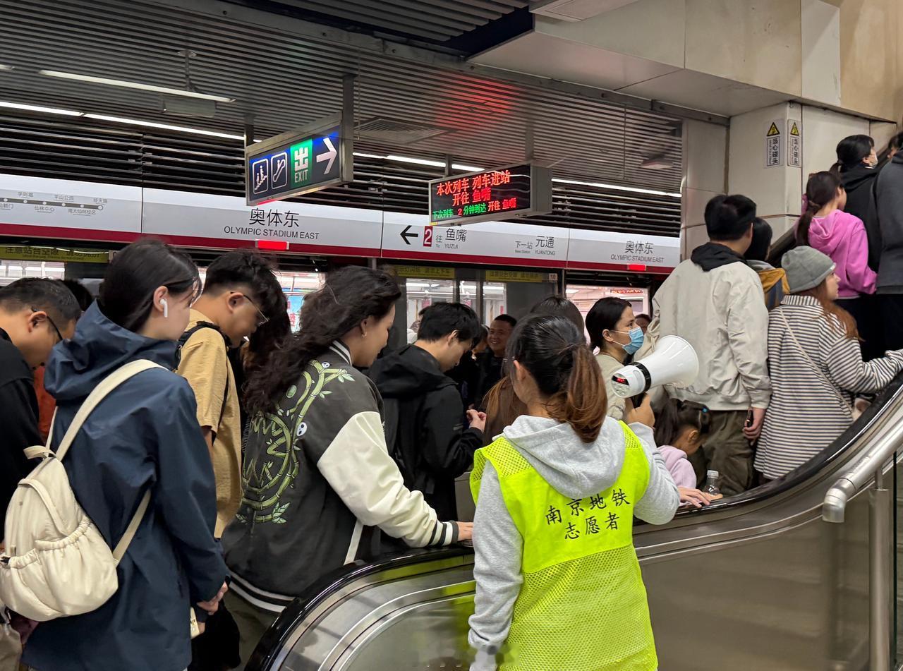 为确保球迷散场后高效疏散,南京地铁在苏超散场高峰时段对途经奥体中心区域的2号线和10号线实施车辆最大化投放,压缩行车间隔,看完苏超的乘客进出站注意脚下,乘车时先下后上~