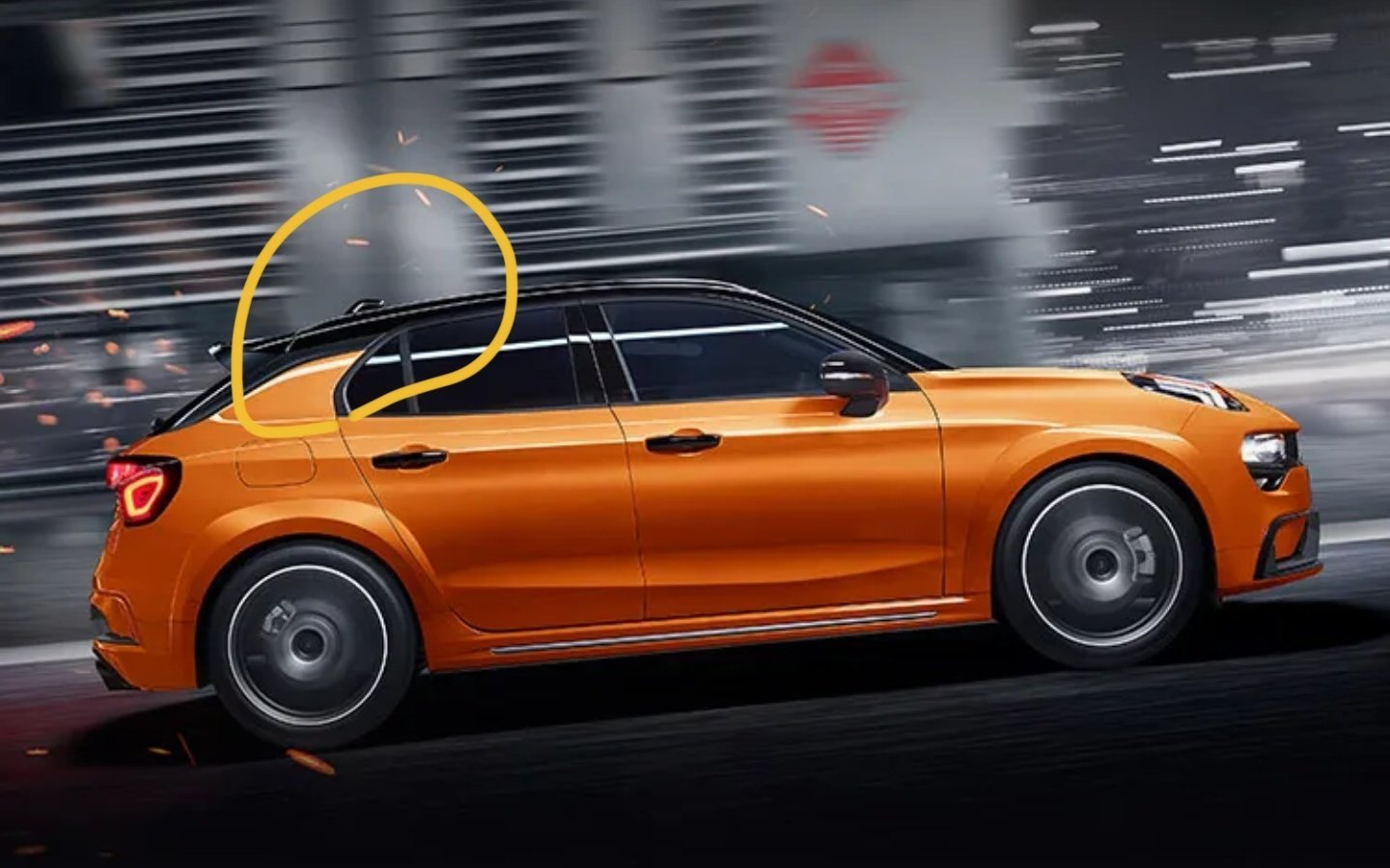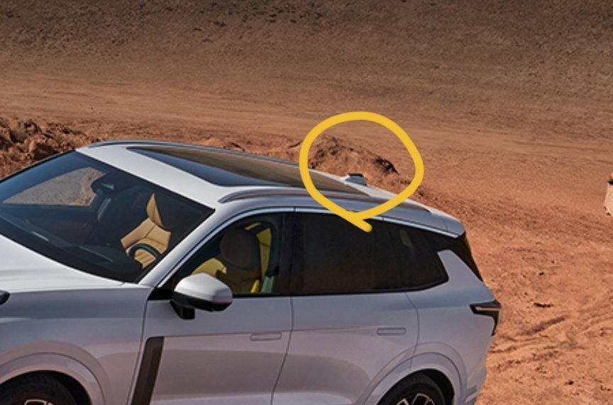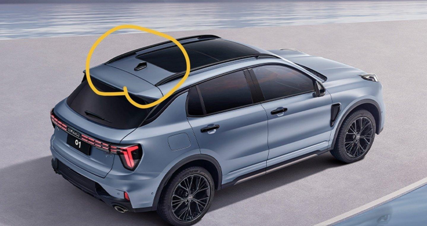古典领克标志性的反向(前高后低)鲨鱼鳍天线,在三代03上变成了正向(前低后高)鲨鱼鳍。