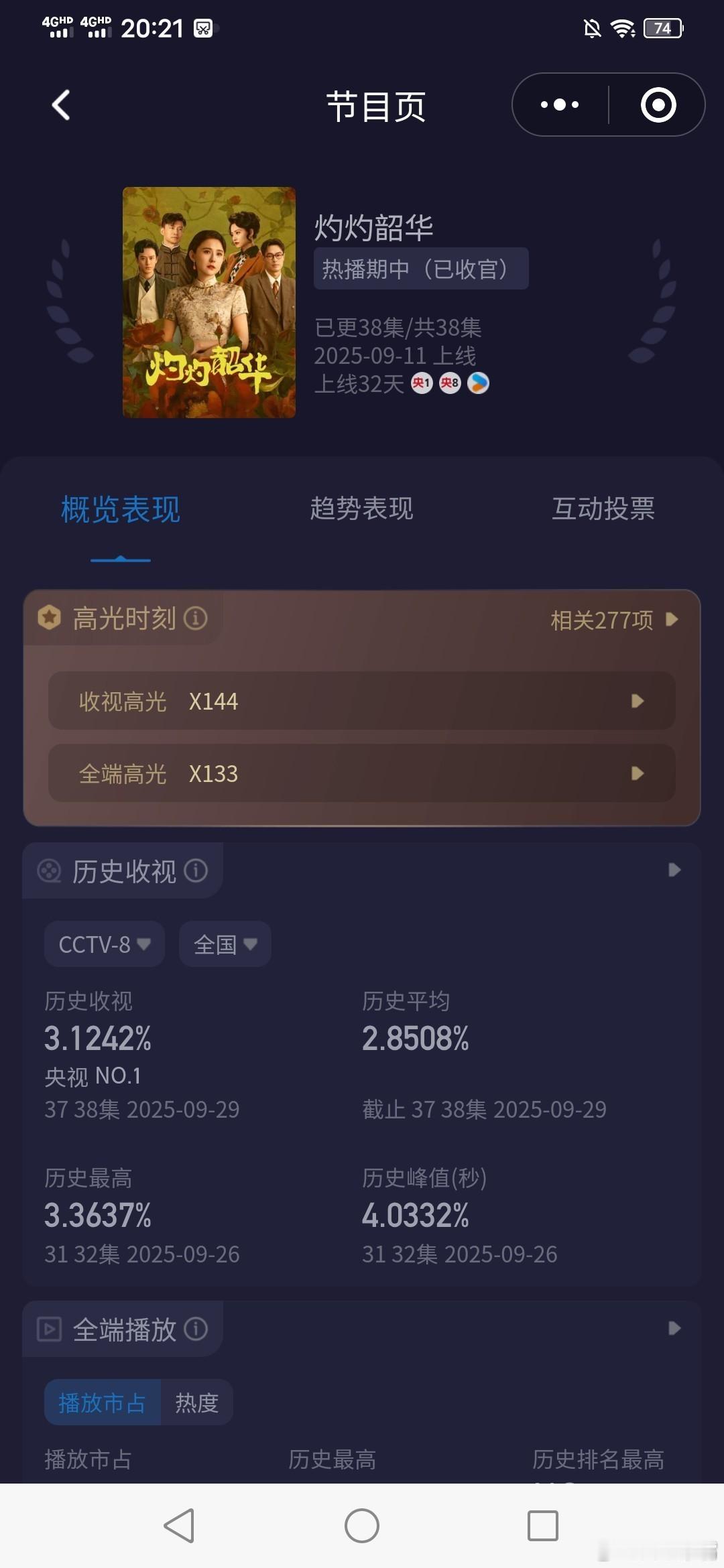 央八酷云峰值排名 随着《沉默的荣耀》收官,央八酷云峰值破3以上历史排名如下: