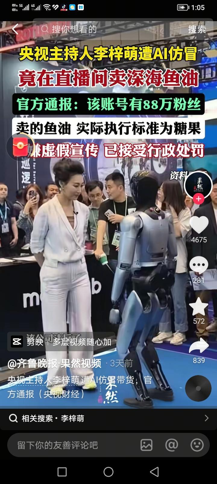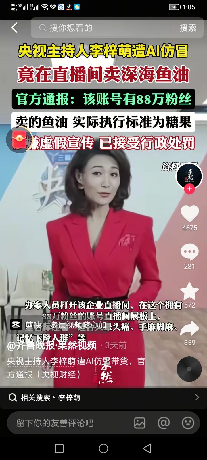 现在短视频利用AI的现象非常泛滥,许多人利用技术合成,从事非法盈利。2025年10月,北京市场监管部门查处了首例利用AI技术进行虚假广告宣传的案件,央视主持人李梓萌的形象被AI伪造用于直播带货。 据了解,该公司从网上搜集了大量李梓萌的新闻录像,用AI软件提取她的面部特征、模仿她的语气,合成了带货视频,甚至还搭建了类似新闻演播室的背景,给虚拟“李梓萌”配上了专业的提词器画面。 这一事件不仅侵犯了李梓萌的肖像权,也违反了《中华人民共和国广告法》相关规定,属于虚假宣传。它反映出了AI技术滥用带来的乱象,提醒人们要加强对AI技术应用的监管和规范,保护公众人物的合法权益和消费者的利益。 许多人不知道的是,其实几个月之前就有人曾利用AI技术使用已故配音演员的声音,然后被人一纸诉状给告了。我们从事某一行业,一定要懂法。一定要明白什么该做,什么不该做。不懂法被别人给告了,那时后悔莫及。李梓萌 AI虚假新闻 AI乱象 ai直播骗局 ai视频自媒体 ai短视频推广 ai合成短视频