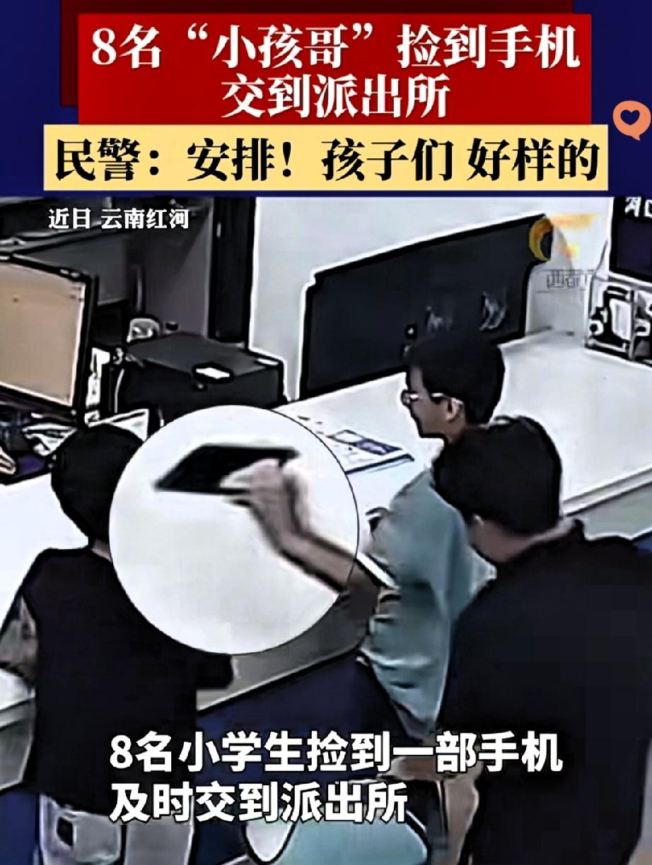 火到央视的,不止是热搜,还有这8位小朋友的“小举动,大能量”。 云南的8名小学生捡到一部漂亮手机,没想着自己留着,而是第一时间送到派出所,还笑着问“会表扬我们吗?会给锦旗吗?” 结果第二天,民警就带着8面锦旗到学校公开表扬,孩子们笑得眼睛都眯成了一条缝。央视也转发视频,给这波“小孩哥”点赞。 拾金不昧,其实是一种习惯,更是一种被鼓励出来的勇气。 当善意被及时看见、被郑重肯定,它就会在孩子心里生根发芽。 民警的这8面锦旗,不只是奖励,更是一次“诚信公开课”。 我觉得,这事儿的价值,不只是“手机找到了失主”,而是让孩子们明白—— 善良有回响,诚信有分量。 你们身边有没有这样的暖心小事?要不要也给他们颁个“民间锦旗”?