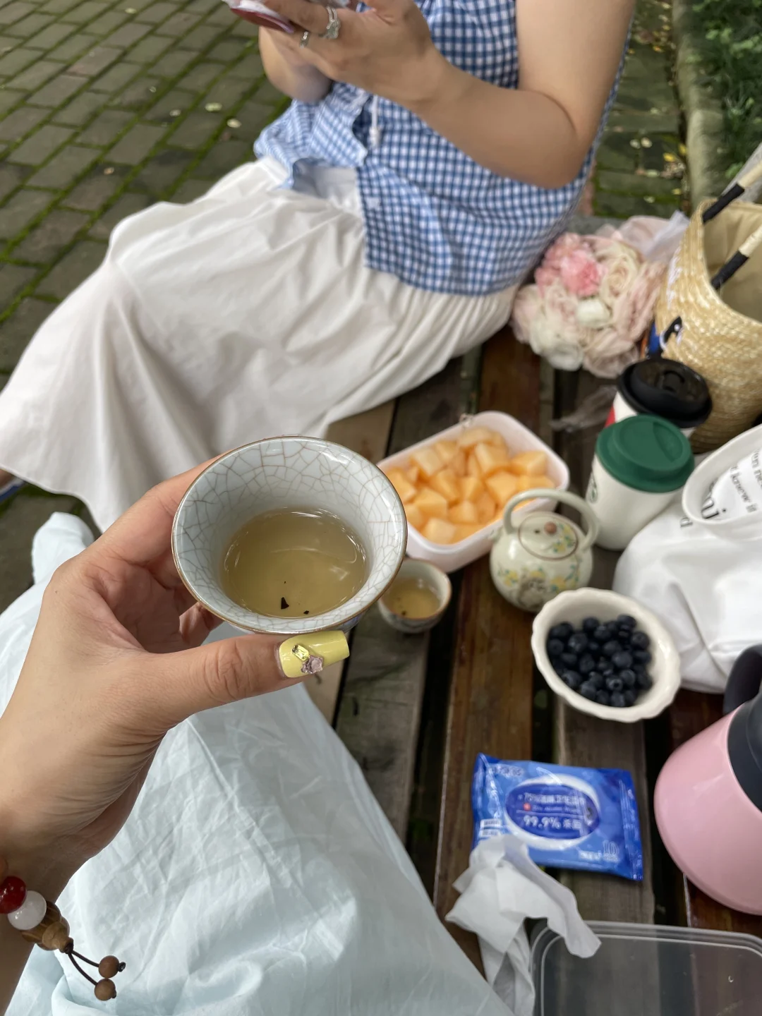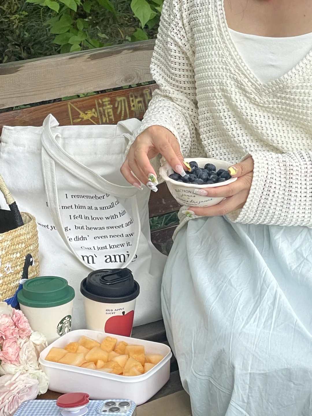 随意找了一张小长凳,公园⛲️20分钟效应充电成功