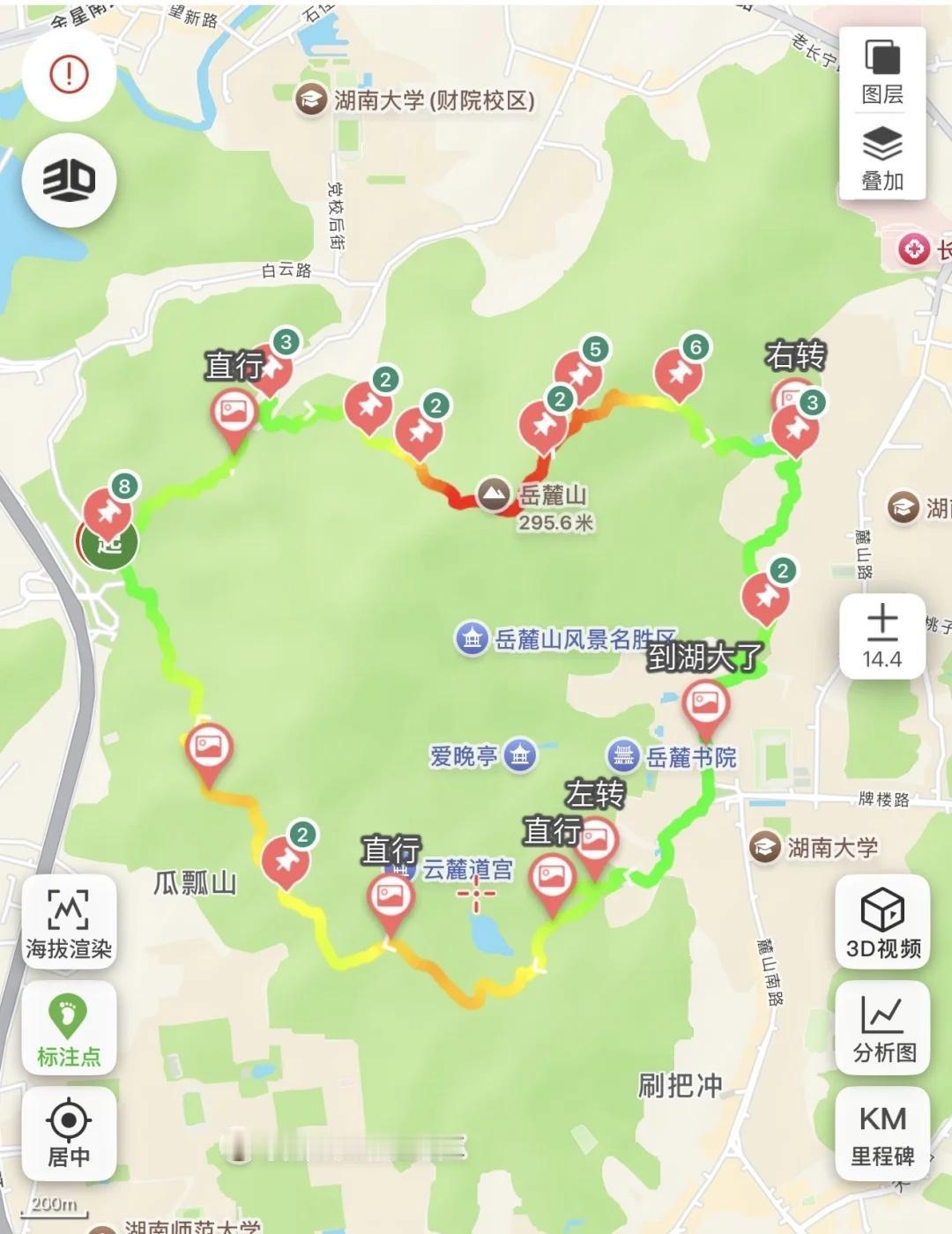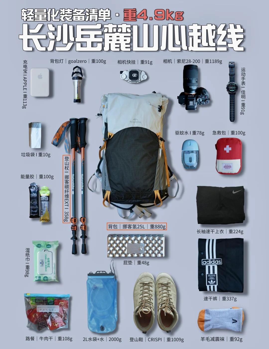 长沙岳麓山心越线|超细装备攻略 💕本次路线是长沙最浪漫的徒步路线岳麓山心越线,整条路线走下来,只有爱心上半部分有升降,其他基本是平路,! 🌟🌟难度两颗星(很适合新手,有腿就行) 🗺️路线:两步路搜“岳麓山心越线”,全程9.15km,累计爬升528米,停停走走拍拍照片累计耗时4个小时左右。 坐地铁4号线到湖南师大1号口前行200米(自驾不好停车)——忠烈祠——长沙电视塔——岳麓山西大门——岳麓山南门1门——登高路——东方红广场——湖南大学——湖南师大——忠烈祠。 【以下是我本次携带的装备清单供大家参考】 🎒背包: 这次背包是挪客氢25L,背包重量只有880g,所有装备+2L水袋差不多装满了一起大概4.9kg,背起来很舒服,特别喜欢他们家6面魔方的设计,两个腰包可以放纸巾这种随身可以取的东西,背带上面的口袋可以放得下iphone ProMax这种大小的手机和矿泉水真的绝了!加上可拆卸背板,重量还可以减轻300g 👔衣: 行走的时候温度大概20度左右,一件速干长袖+速干裤就行,容易出汗的可以备一件上衣更换,山路不好走最好穿防滑的徒步鞋。 🍜食: 不着急慢慢玩的话带一些牛肉干面包就行,水是必带的!能量胶可带可不带。 🎬拍摄: 建议带上相机拍照还是很出片的。 ‼️其他必带: 登山杖|省力防身防动物 急救包|万一摔了? 充电宝|看自己电子产品的续航 垃圾袋|产生的垃圾都带走 驱蚊水|山里有蚊子 湿纸巾|擦擦小手 🫤可带可不带: 能量胶 屁垫 背包灯 户外徒步 徒步丈量世界 挪客登山包 挪客背包 挪客氢25L 挪客轻量化背包 轻量化徒步背包 登山包推荐 登山包性价比推荐
