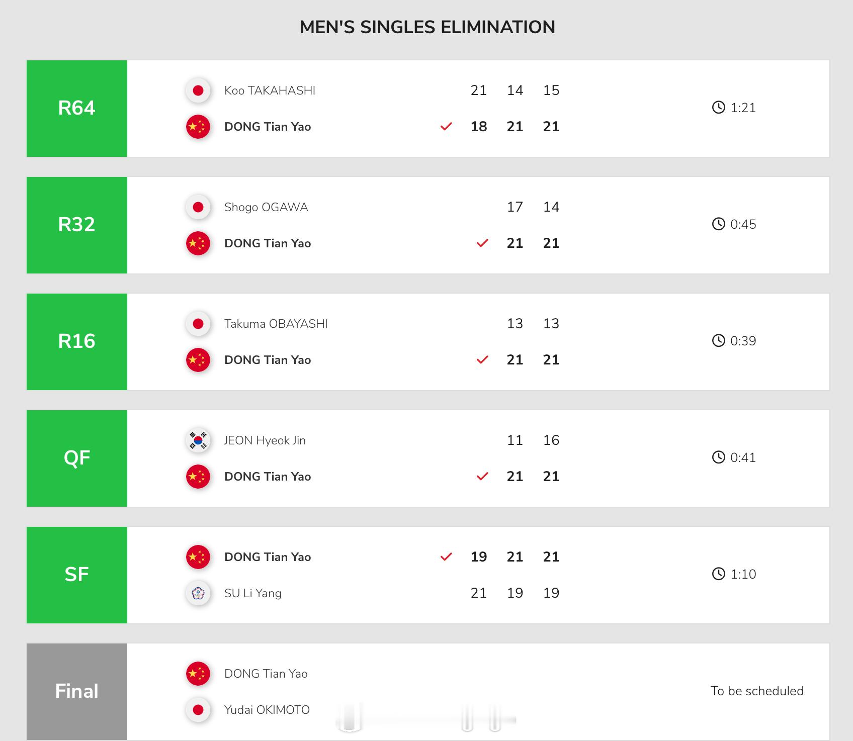🇨🇳董天尧 21-14 21-17 冲本优大🇯🇵