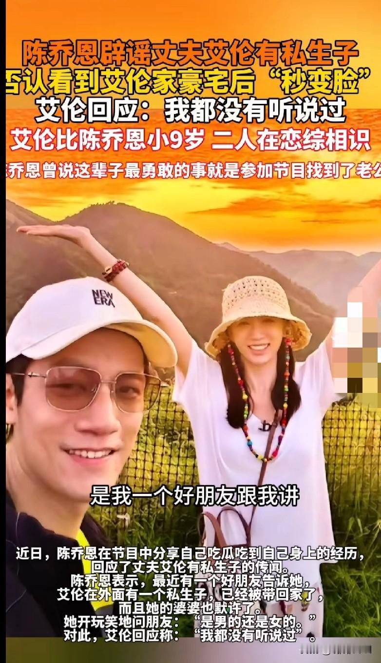 “笑不活了!陈乔恩吃瓜吃到自己头上!有人造谣她老公艾伦有私生子,她还开玩笑问朋友‘是男是女’,艾伦直接回应‘我都没听说过’。 还有人说她看到艾伦家豪宅秒变脸,这也太离谱了!他俩在恋综认识,艾伦比她小9岁,陈乔恩之前还说参加节目找老公是这辈子最勇敢的事。 这种无厘头谣言真的没必要,人家小两口过得好好的。咱就说,别整天盯着明星瞎造谣,多关注点正能量不好吗?”