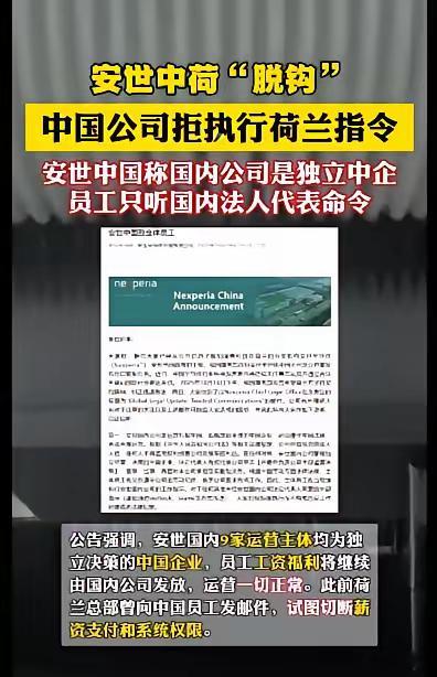安世中国发布声明,不再接受荷兰的任何指令,将独立运营……