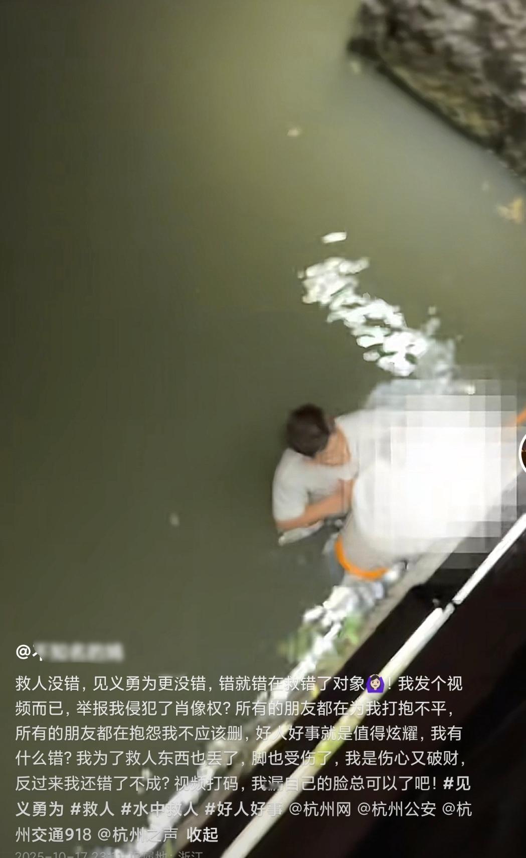 “寒心”救人英雄反遭举报:当善举遇上肖像权,谁凉了社会正气? 纵身跃入冰河,救起陌生女子,却因一条记录善举的视频,反被对方以“侵犯肖像权”举报——浙江杭州高先生的遭遇,让见义勇为蒙上一层阴影。 2025年10月14日晚,运河边的生死救援本该是个温暖故事。 高先生跳河救人,脚被碎石划伤,手机钱包尽失,却仍满怀喜悦地发布路人拍摄的模糊视频——这是他人生第一次救人,只想“让网友夸夸”。 然而,被救女子的举报信比感谢来得更快。尽管视频中根本无法清晰辨认对方面容,平台仍按流程下架内容。 律师指出,为弘扬正能量而发布的救援视频,完全符合《民法典》“维护公共利益”的合理使用条款。 这场争议早已超越个案: 救人者受伤破财反遭投诉,直言“寒心” 被救者担忧“狼狈形象”传播,选择法律维权 社会正气在僵化审核与道德困境间左右为难 当善良需要计算回报率,当善举要先签署“保密协议”,下一个溺水者还能等到毫不犹豫的援手吗? 别让冰冷的条文,冻僵了温暖的人心。 支持善行记录,就是守护我们共同的社会温度。