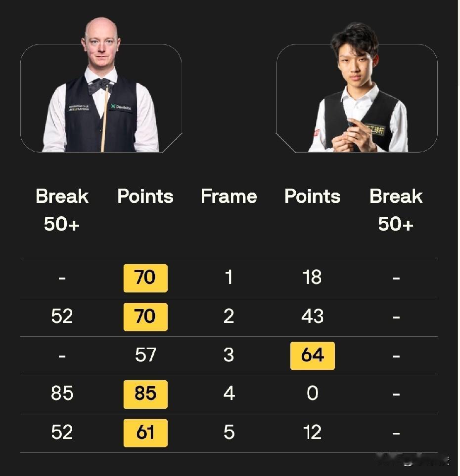 吴宜泽4-3绝杀唐纳森,晋级北爱尔兰公开赛第二轮;赵心童0-4被乔丹·布朗零封,蓝裕豪1-4负于韦克林,无缘第二轮。 今天北爱尔兰公开赛正赛首个比赛日,赵心童在与主场作战的乔丹·布朗的比赛中,虽然打得小心翼翼,但准度依然不在线,比赛完全落入防守节奏,而这正是布朗的套路。 第一局,布朗的高质量斯诺克让赵心童罚了太多分数,最终赵心童丢掉本局。第二局,赵心童虽然做了一杆斯诺克,布朗也被罚了一些分,但赵心童在走位和准度方面不及预期,又丢一局。 0-2落后的赵心童上手后拿到4分又出现简单黑球失误,而布朗今天的准度特别高,最终赵心童丢了第三局,0-3落后。 前3局两人的安全球成功率,赵心童只有76%,而乔丹·布朗是96%。 七局四胜的比赛,布朗拿到赛点,赵心童已经站在了悬崖边。 第四局,手握四个赛点的布朗越打越自信。长台上手,一杆拿到51分转入防守,之后布朗又是一杆长台进攻再次上手,超分致胜。最终乔丹·布朗4-0击败新科世锦赛冠军赵心童,强势挺进第二轮。 看得出来,赵心童今天很努力,但状态就是差,也很无奈,希望球迷多给赵心童一些时间调整状态和心态,也希望赵心童多找找原因,尽快走出低迷状态。 刚刚,吴宜泽4-3绝杀唐纳森,晋级第二轮。 今天17点进行的比赛,蓝裕豪状态很差,最终1-4韦克林。由于那个时段只有一桌比赛,球迷都把目光聚焦于此,感觉蓝裕豪有点怯场。实话实说,韦克林打得也不是特别好,开头三局后失误很多。