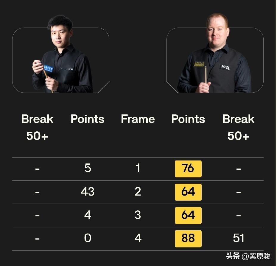 吴宜泽4-3绝杀唐纳森,晋级北爱尔兰公开赛第二轮;赵心童0-4被乔丹·布朗零封,