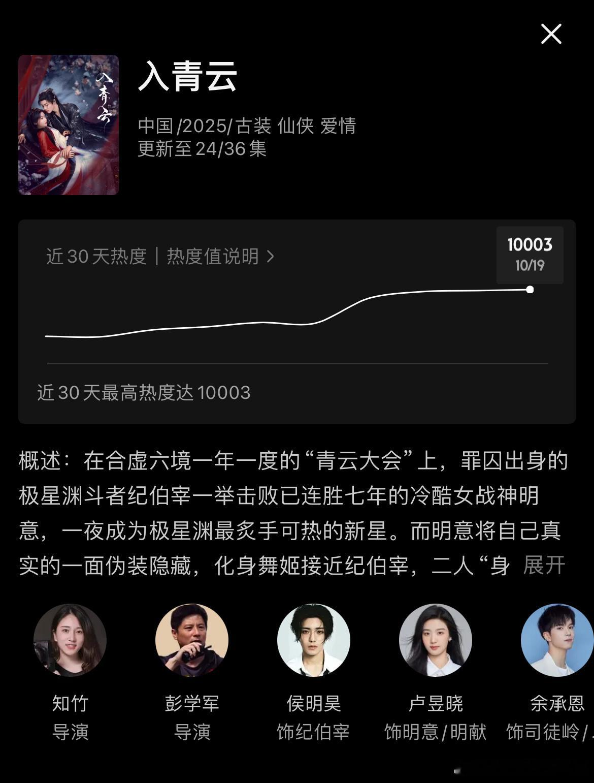 侯明昊、卢昱晓入青云优酷热度破10000 恭喜,2025优酷第7部破万剧集