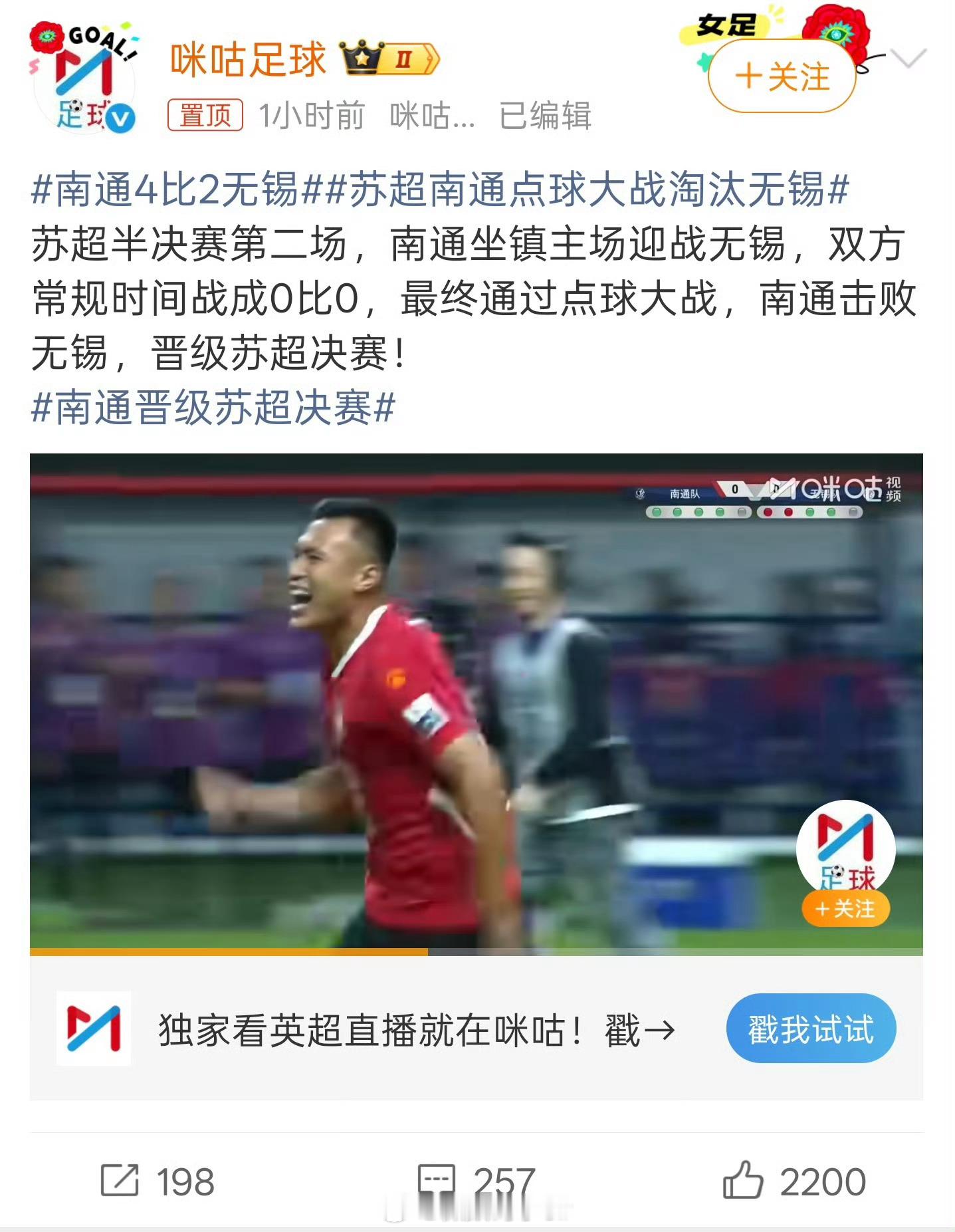 南通4比2无锡