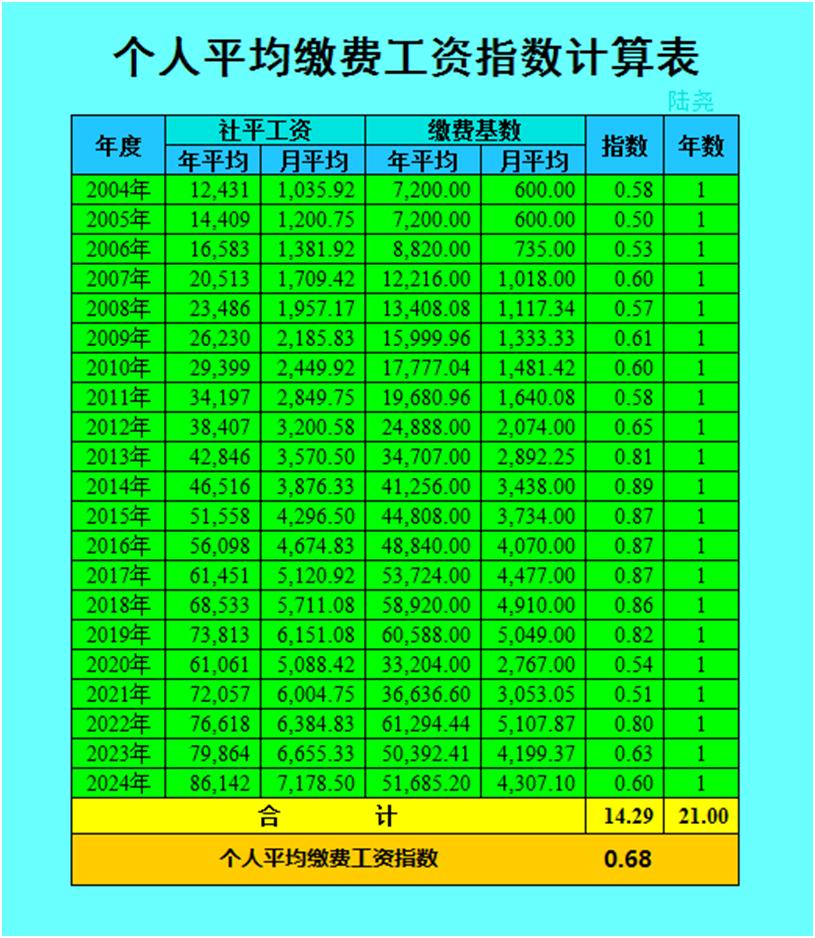 根据个人缴费基数计算平均缴费工资指数,综合参保因素计算退休养老金 近日,时常有朋