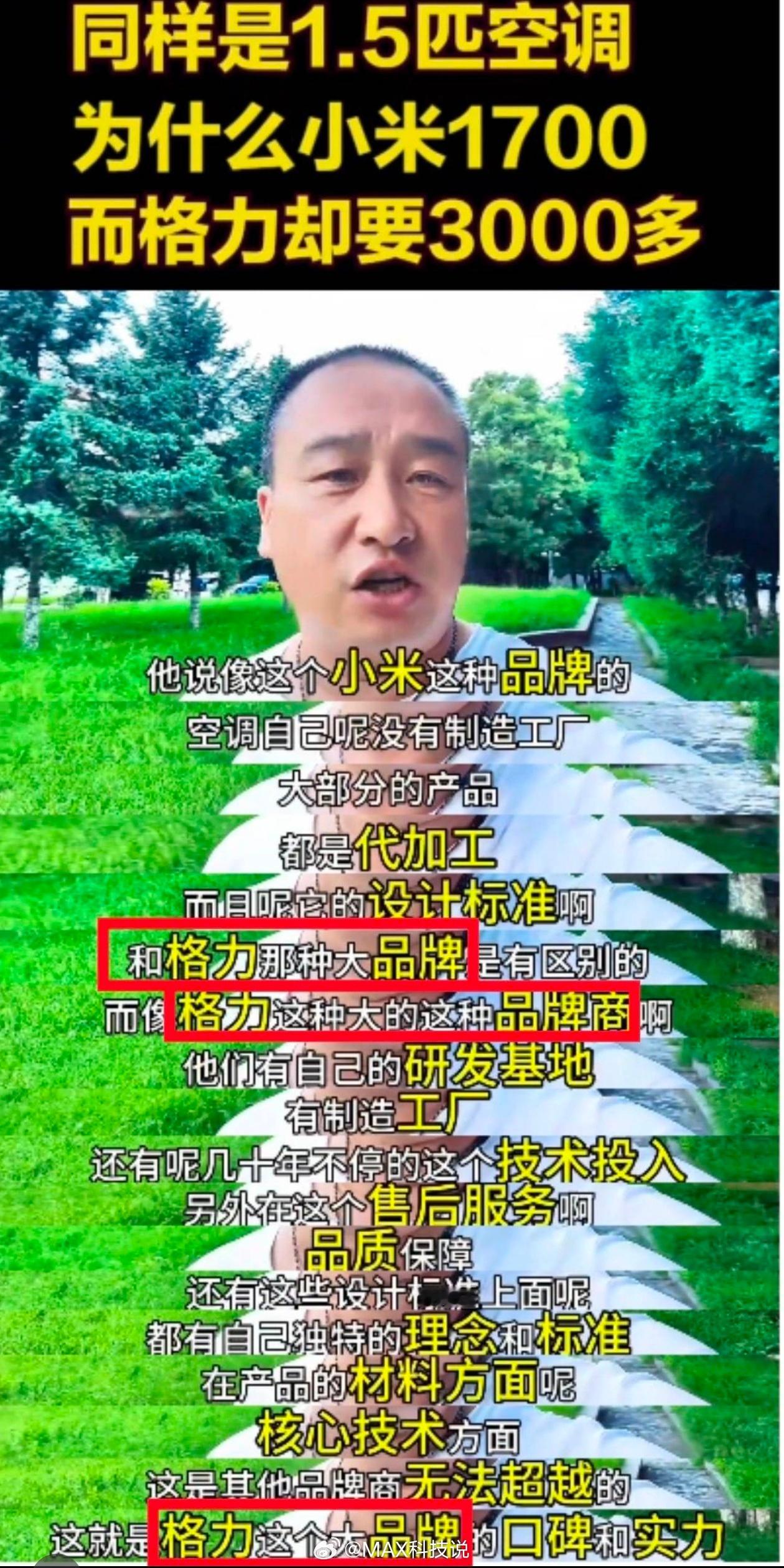 啊,格力高管暗示友商黑给力,实际上完整视频是极限反转,后面是夸格力损小米的[允悲]