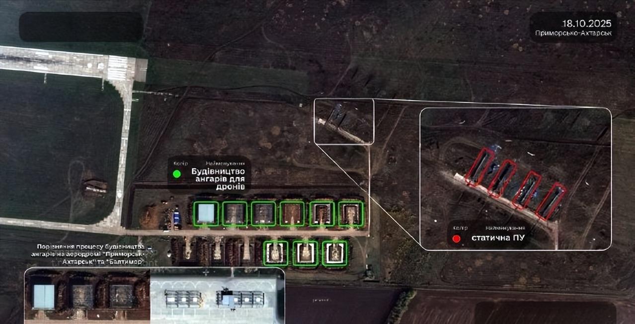 据媒体报道,乌方发布的俄罗斯克拉斯诺达尔边疆区普里莫尔斯科-阿赫塔尔斯克机场的卫星照片,显示了用于停放军机和无人机的机库。 画面中有几处固定发射装置用于无人机(红色标注),至少21架已做好发射准备的“天竺葵-2”型无人机(橙色标注),还有两种类型的无人机机库——5个已建成和9个正在建设中的大型无人机机库(绿色标注),每个机库至少可容纳20架无人机,以及几个小型机库,可容纳1-2架无人机(黄色标注)。 此外,机场还建有数个用于苏-35S、苏-30SМ和苏-34战机的机库。此前乌方已多次发布该空军基地在建造机库和发射位置过程中的照片(1,2,3)。 可以看出,普里莫尔斯科-阿赫塔尔斯克实际上兼具机场和无人机港口的功能,且正积极扩建。这意味着一件事——未来同时向乌克兰发射的“天竺葵”型无人机数量只会增加。 来源:军事情报员