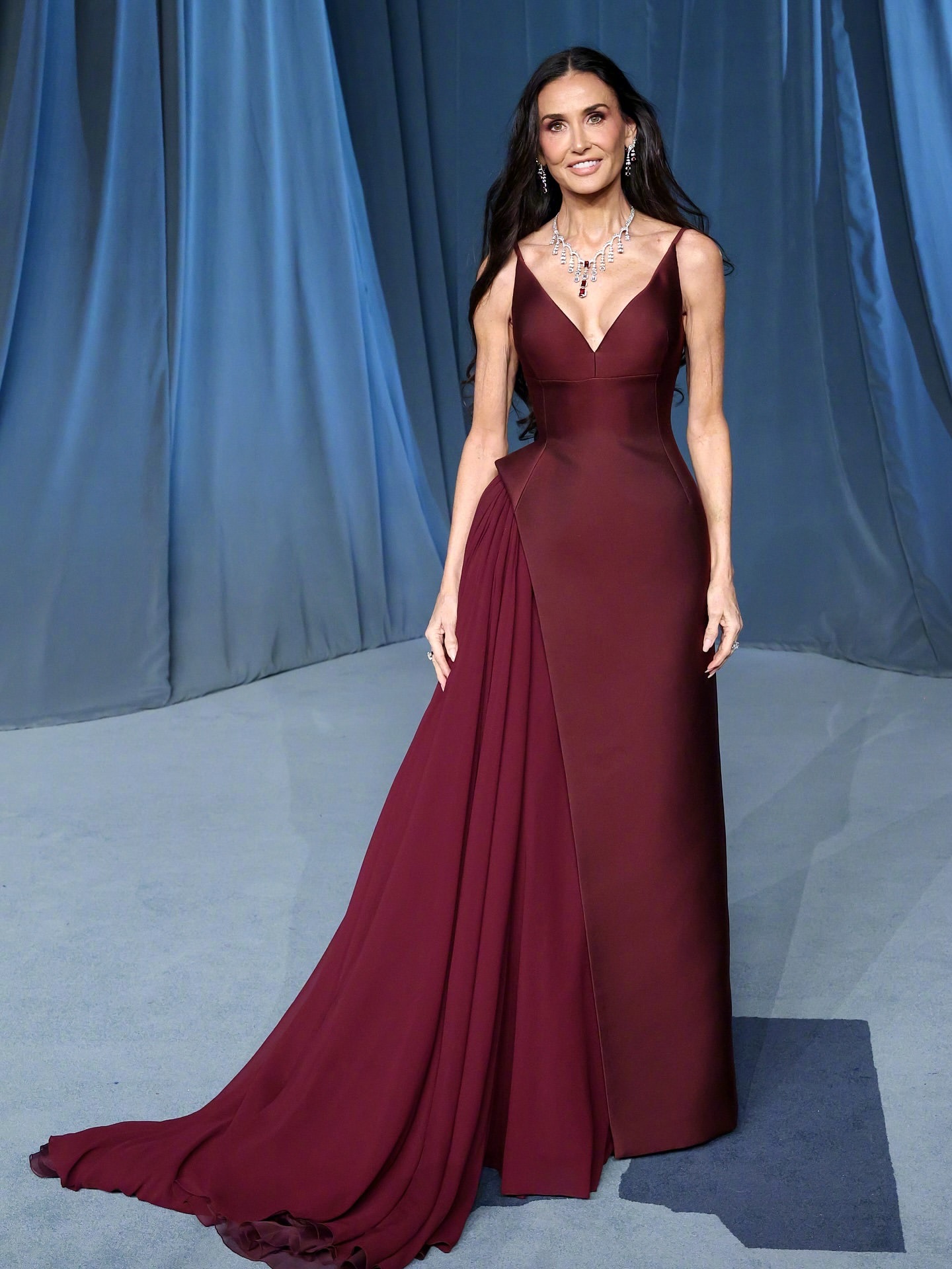 2、黛米·摩尔,穿着Prada 礼服,佩戴卡地亚 Cartier珠宝。