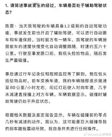 陈震还原了事故经过:开着闪灵的辅助驾驶,低头捡东西,结果车辆突然提速【来自懂车帝车友圈】