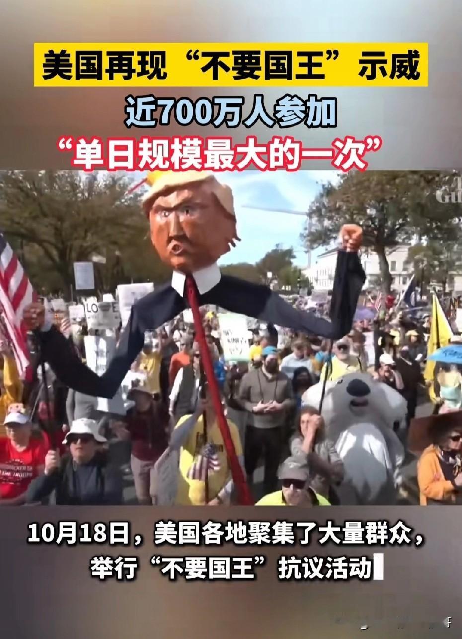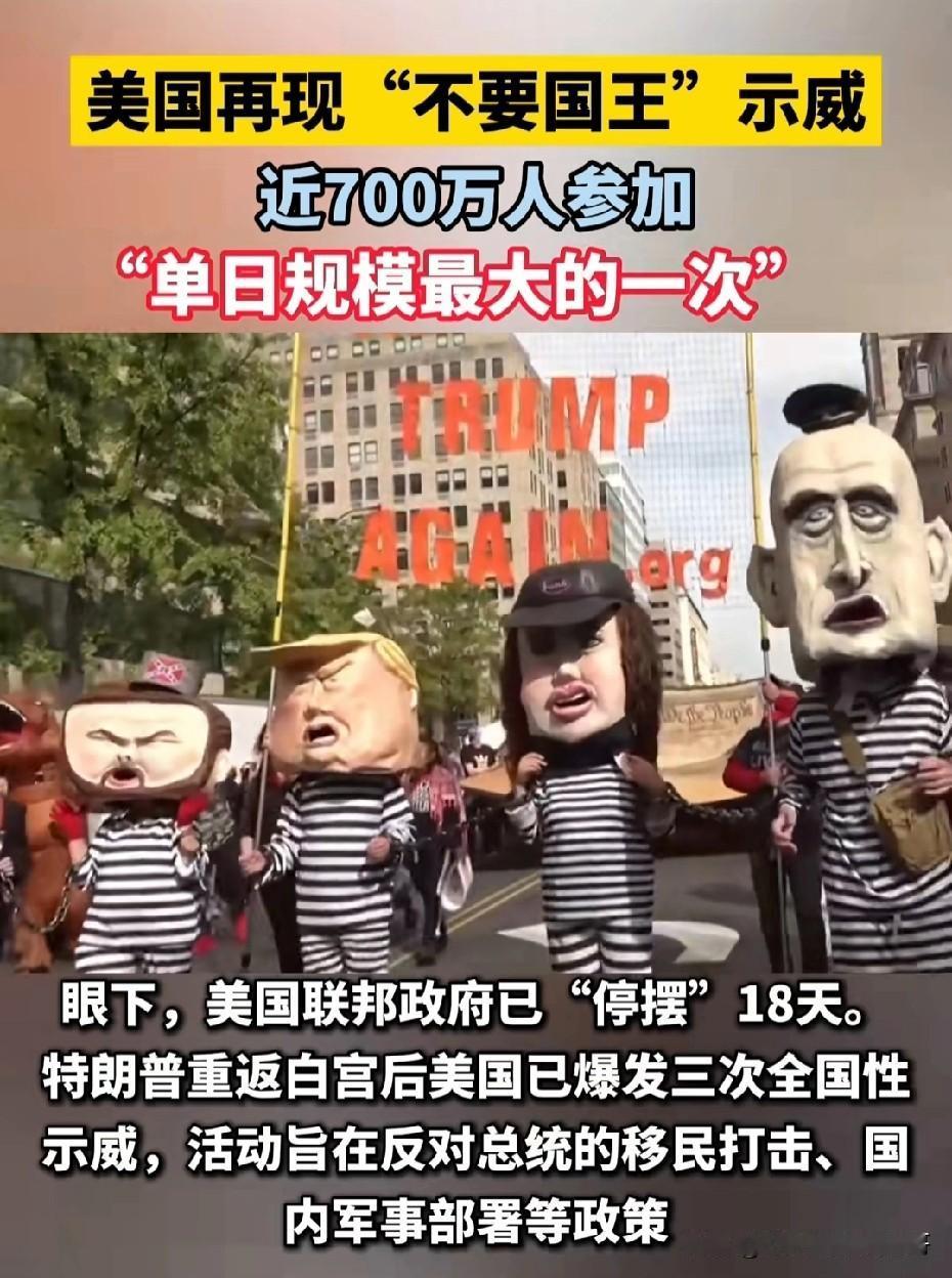 美国“不要国王”示威近700万人参加,“单日规模最大的一次”! 就在近期,美国