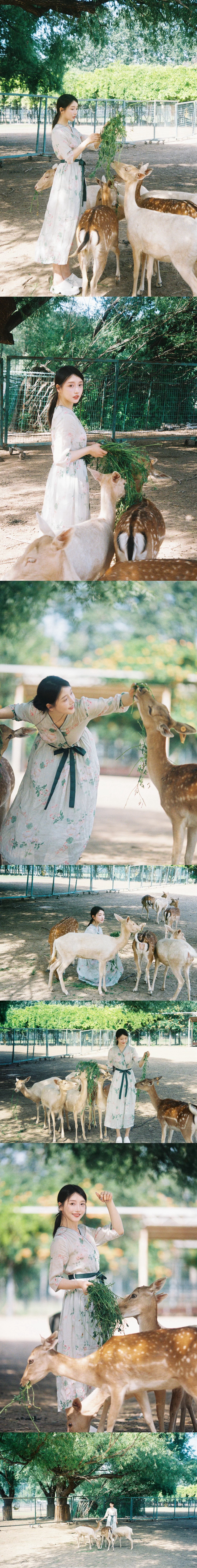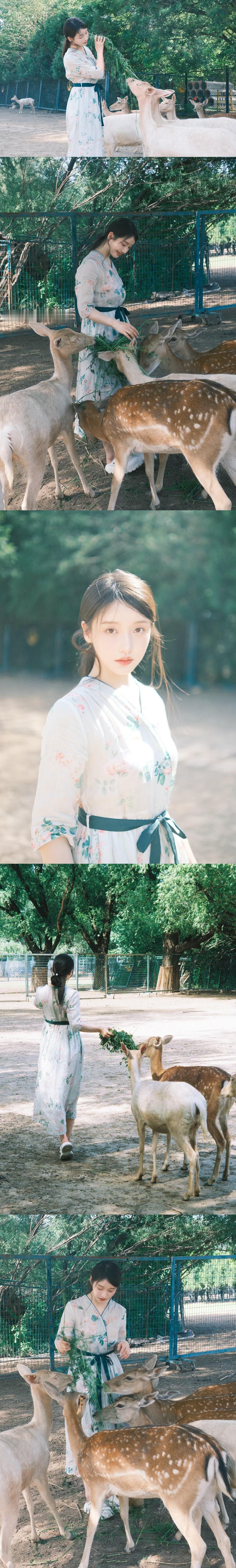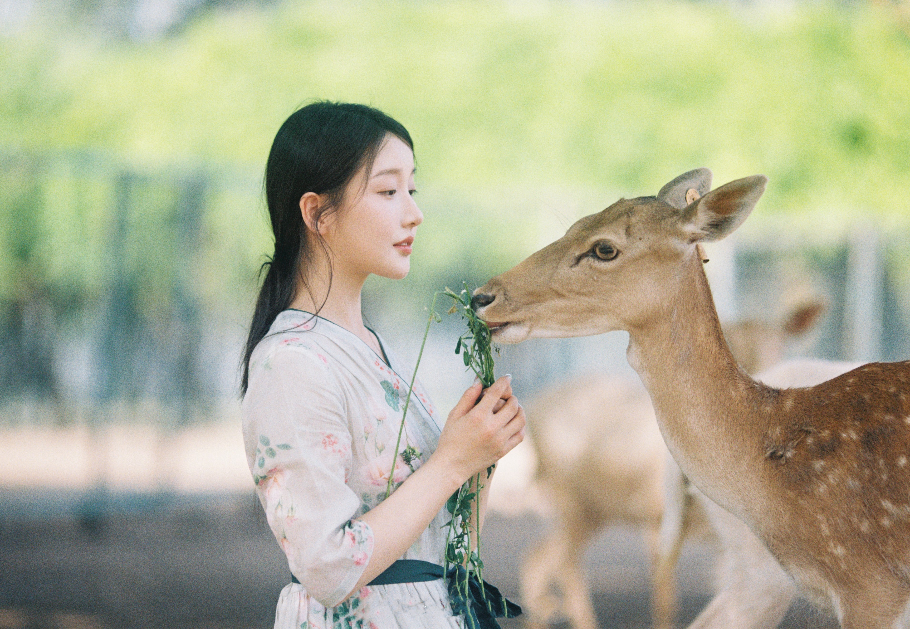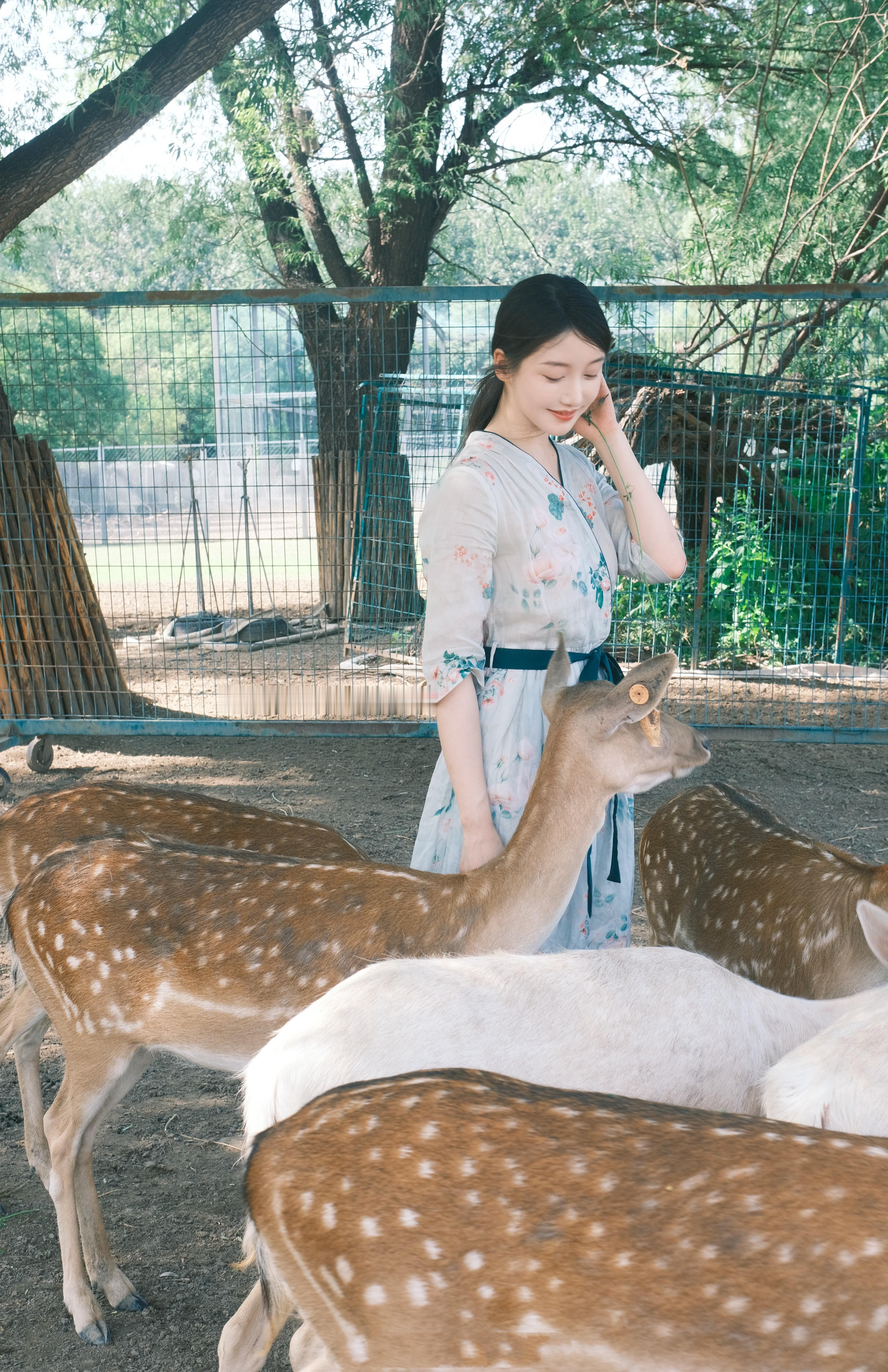 姜贞羽,与鹿同框,灵动的少女姜姜