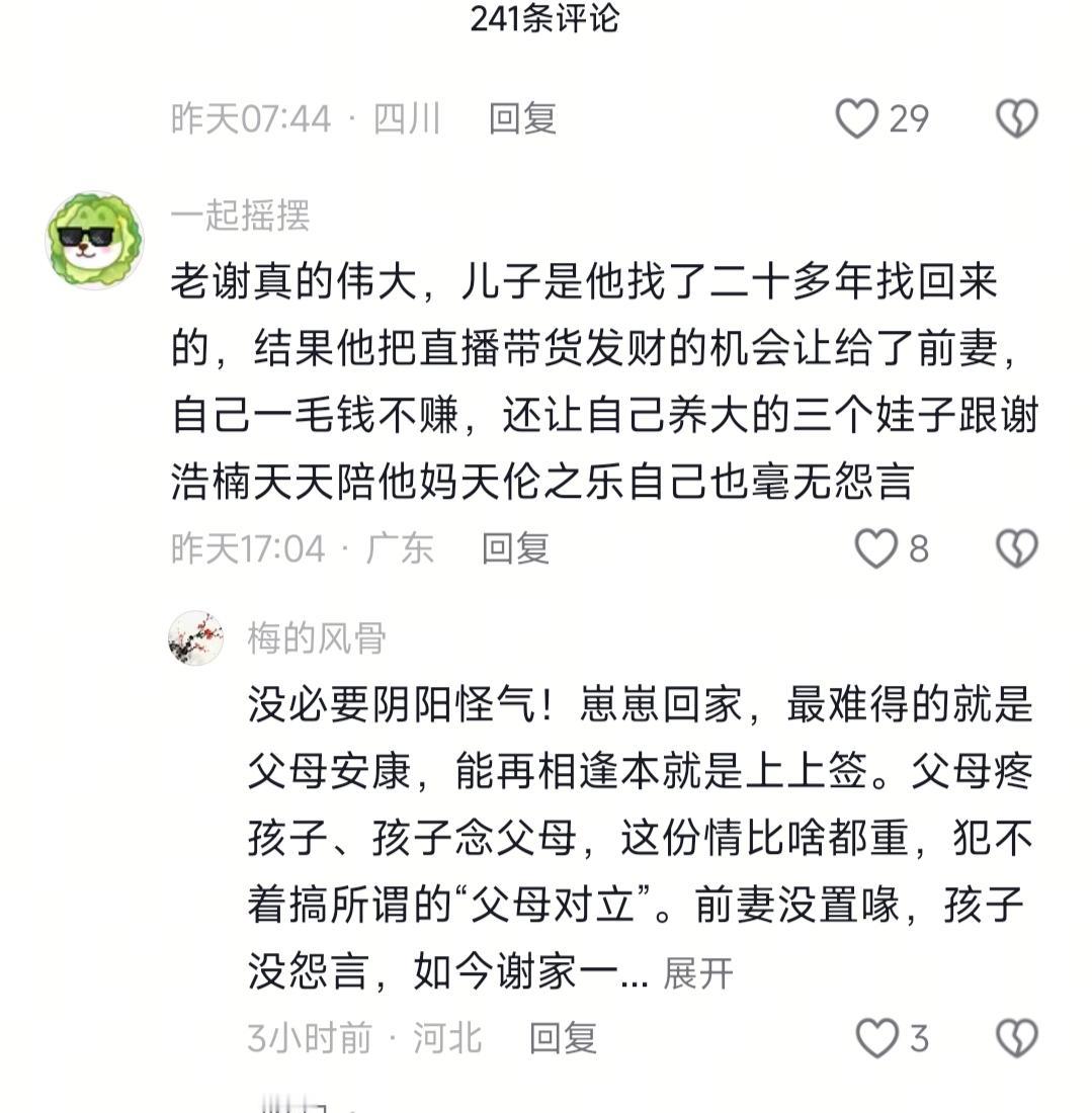 现在全网最糟心的男人就是谢爸了吧! 不是因为去了叶锐聪的答谢宴也不是因为没有直播而是因为现在变得非常低调,却有人说他在逃避什么! 我晕,你们刷到叶锐聪认亲宴的视频没?本来以为寻亲成功的答谢宴,肯定全是哭哭笑笑的热闹劲儿,结果我蹲了俩小时直播,愣是看出了“冰火两重天”——一边是叶锐聪认孙海洋当干爸,叶妈还专门送了锦旗,那场面,弹幕全在刷“太棒了”“给力”;另一边呢,有个身影往宴会厅最里面的桌子一坐,全程没吭声,连镜头扫到都只是低头吃饭,就是谢爸。说实话,我本来想“这不得上台说两句?毕竟都是寻亲圈的‘战友’”,但后来发现,人家不仅没上台,连自己账号都没发一条相关内容,跟其他主播全程直播比起来,简直像两个画风。 说起叶妈和孙海洋的交情,我还真有点感慨。他们那时候找孩子,跟咱们现在刷手机查信息完全不一样,就靠两条腿跑遍大街小巷,在电线杆、公告栏上贴寻人启事,一张一张跟贴小广告似的,说实话,现在想起来都觉得难——那时候没微信没短视频,信息传得比蜗牛还慢,找个人跟大海捞针似的。叶妈还跟孙卓奶奶一起贴过,你想啊,俩老人顶着太阳或者冒着雨,一张纸一张纸地粘,那股子韧劲儿,换我可能早就崩溃了。有人跟我说“能一起扛过苦的,才是真朋友”,以前没太懂,现在看叶妈给孙海洋送锦旗那认真劲儿,突然就明白了。 认亲宴直播的时候,评论区简直像开了“十万个为什么”,最集中的就是问谢爸——先是“谢爸来了没?怎么没看见”,我当时也跟着在评论区刷,生怕漏了镜头,后来有人回复“去了去了,在角落吃饭呢”,还说他是“上岸”家长里最有分寸的,不抢风头,我这才松了口气。本来以为这事儿就过了,结果没过多久,又有人问“谢爸给谢浩南送房子没?你看叶妈都送楼了”,说实话,看到这儿我有点郁闷——难道送贵重东西才算疼孩子吗? 这让我想起之前的事儿:我邻居家孩子,爸妈开公司的,从小要啥给啥,初中就送了套小公寓,结果去年孩子跟我说“我宁愿他们少给我买东西,多陪我吃顿饭”。你说这物质堆出来的,能算真的爱吗?还有人跟我说“凡事讲究个缘分,强求不来”,本来我不懂,现在看网友这么追着问谢爸,反而有点明白了——人家的家事,咱们外人瞎掺和啥呢?就像我之前帮一个寻亲的朋友转发视频,本来想“多个人看就多份希望”,结果有个网友评论说“你确认信息是真的吗?瞎转发耽误人家怎么办”,当时我特委屈,觉得好心没办好事儿,后来才知道,寻亲这事儿,真不是光有热情就行,得有分寸,别给人家添乱,谢爸这样不声不响的,说不定就是不想让自己的事儿盖过叶锐聪认亲的重点呢? 说实话,我之前刷到过谢爸的抖音,那时候他还挺活跃的,老发带女儿去公园玩、在家做游戏的视频,有时候还提提自己用着顺手的产品,我当时还想“这是要准备带货吧”,结果这次认亲宴,他不光没直播,连账号都没更新一条相关内容,我晕,这反差也太大了! 有人说他是怕之前的带货铺垫引争议,万一大家说他“借认亲蹭热度”,反而不好;也有人说他家里可能有事儿,之前就有人问他“谢妈咋没出镜”,他也没回应,说不定是家里有没公开的情况。我倒想起之前在寻亲群里看到的事儿:有个家长找孩子找了12年,好不容易找到了,本来想办个大答谢宴,请所有帮过忙的人,结果孩子跟他说“不想太张扬,只想跟家里人好好吃顿饭”,那家长本来还挺纠结,后来还是听了孩子的,就家里人小聚了一下。当时群里有人说“太低调了,应该让更多人知道团圆的喜事儿”,但那家长说“孩子舒服比啥都重要”。现在想,谢爸会不会也是这样?毕竟认亲是人家的事儿,不是给咱们看的热闹,对吧? 本来寻亲成功是多让人开心的事儿啊,结果现在一刷评论,不是比谁送的东西贵,就是追着问人家为啥不说话,多没意思啊?之前有人跟我说“看人要看心,不是看表面”,那时候没太往心里去,现在看叶锐聪认亲宴这事儿,突然就懂了——孙海洋帮了那么多寻亲家庭,不是靠送东西,是靠实实在在的经验和支持;谢爸低调,也不是不重视,可能只是不想打扰孩子,或者有自己的考虑。 总之,谢爸的低调,有他的考虑吧!毕竟这是他的私事,团圆本来是一件好事,所以无需多言了!叶锐聪 谢爸离婚