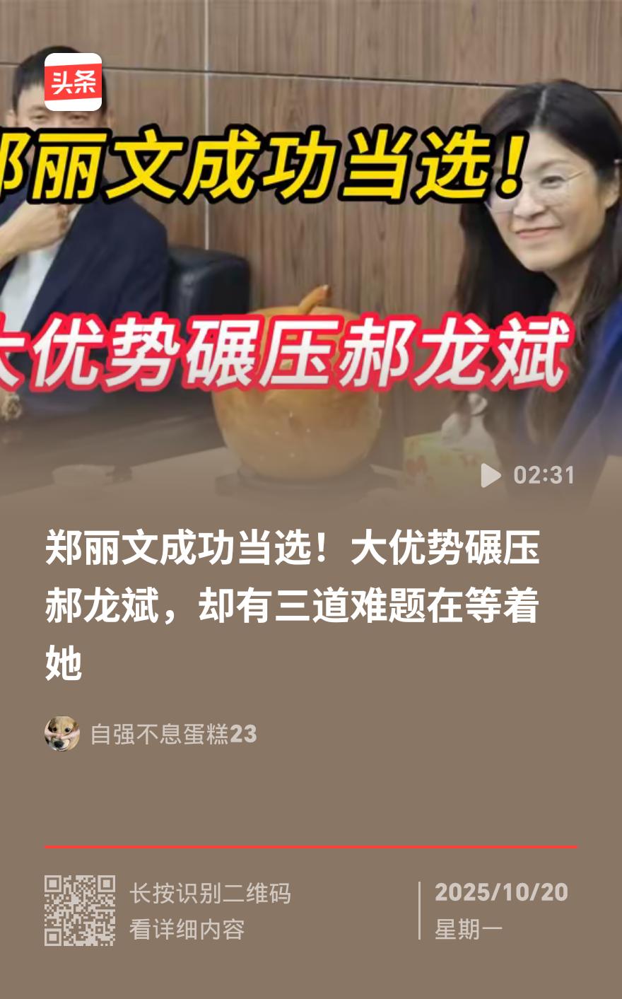 郑丽文以 “一女胜五男” 的姿态拿下国民党主席宝座,本应是打破僵局的开始,可一场围绕 “秘书长人选” 的博弈,却瞬间将她拖入了国民党最熟悉的困局。 蔡丽文