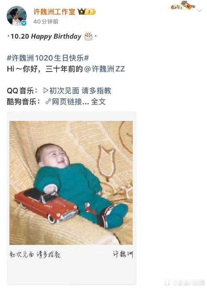 许魏洲发了30年前的照片可爱到尖叫!生日发原创,封面用30年前童年照!绿毛衣配红小车,萌度拉满[爱慕] 发微博问候30年前的自己,哈特软软[开学季] 从前萌,现在帅,大帅哥生日快乐!