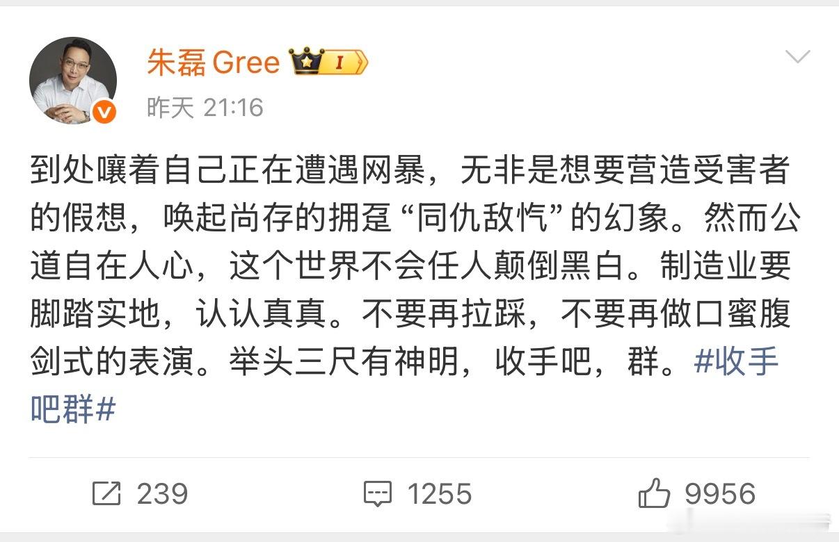 格力电器市场总监朱磊发文贴出了确凿的证据,证明了格力才真的遭遇海量“黑公关”,朱磊喊话,不要拉踩表演,制造业必须要踏踏实实,认认真真,公道自在人心,收手吧!