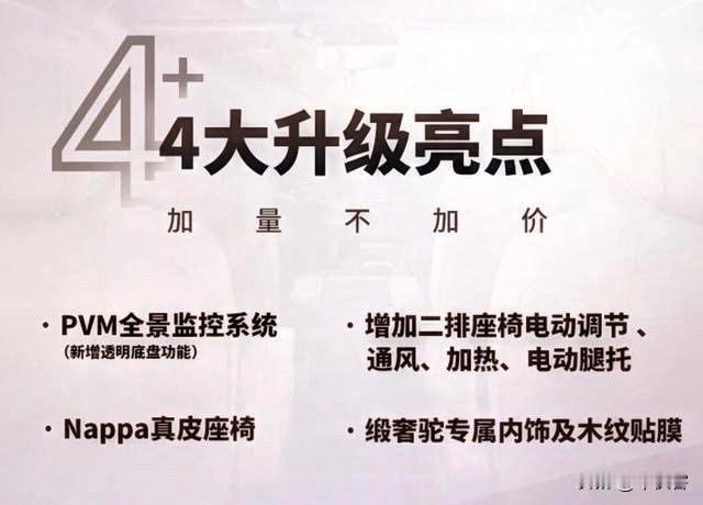 格瑞维亚终于舍得发布全新的配置和全新的价格了,在指导价格不变的基础上,确实是增加了不少的配置,特别是尊贵,新增了二排座椅腿托,二排座椅通风加热,软质材质仪表台,360高清了,还带了透明底盘 还新增了一个叫四驱尊爵的配置,性价比嘎嘎高,对比四驱尊贵版贵6千,这一堆配置6千块成本也不够,但是塞纳26款的至尊版,性价比也不差,也是36.98万的价格 实际上这次改款以后的格瑞维亚放弃了两个配置,第一个叫四驱尊贵,第二个顶配的旗舰版,这俩配置厂家估计就不抱什么希望了 但是2026款配置也有些瑕疵,所有的配置能选一种内饰颜色不大合理,第二个,你这个四驱尊爵版,你既然已经把桌子都掀了,为啥不给前排座椅增加座椅通风,差这点钱?掀就掀到底 总结:2026款不管是赛那还是格瑞维亚改款该了个寂寞,两台车是你你怎么选择