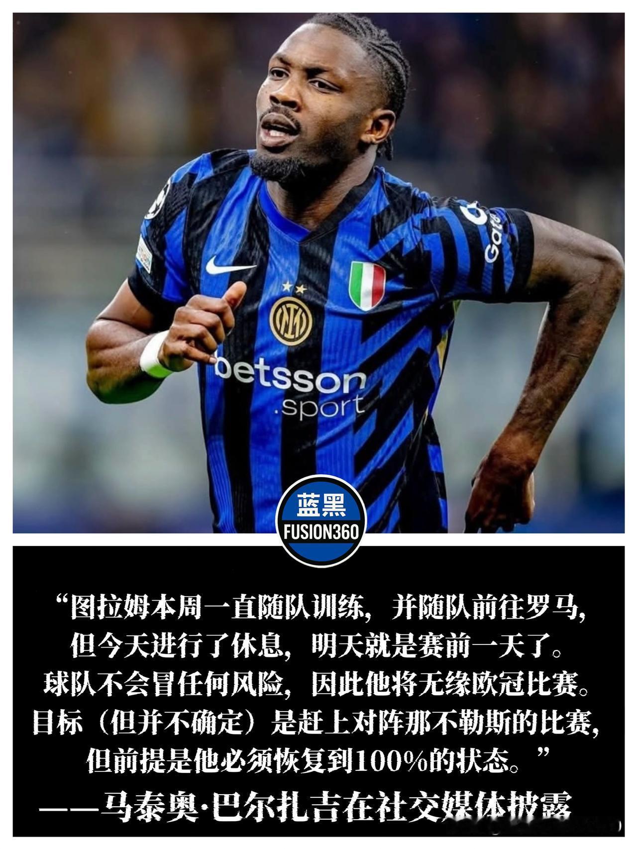 图拉姆冲刺那不勒斯!博尼埃斯波西托谁先发 图拉姆整周都在进行单独训练,已和球队随队前往罗马,当天有充分休息,但进入密切监控阶段。齐沃的目标是让这位法国前锋在10月26日对阵那不勒斯的关键战役中复出,但前提是图拉姆必须达到100%的状态。 根据媒体报道,图拉姆有望在本周末和下周初重新融入集体训练。不过由于欧冠对阵圣吉洛瓦兹的比赛时间紧张,他很难赶上10月22日的欧洲赛场,全力保留体能为意甲才是最现实的选择。 在图拉姆缺阵期间,博尼和埃斯波西托成为劳塔罗身边的两大候选。这场前锋人选的争夺战备受球迷关注 。 在两周内连续对阵罗马和那不勒斯的关键时段,国米的锋线管理直接影响争冠前景。你认为这两位年轻前锋谁应该在那不勒斯首发?国际米兰 💙🖤