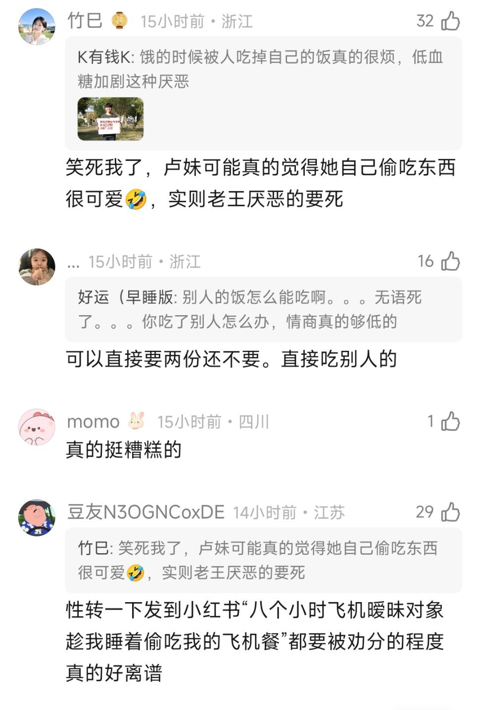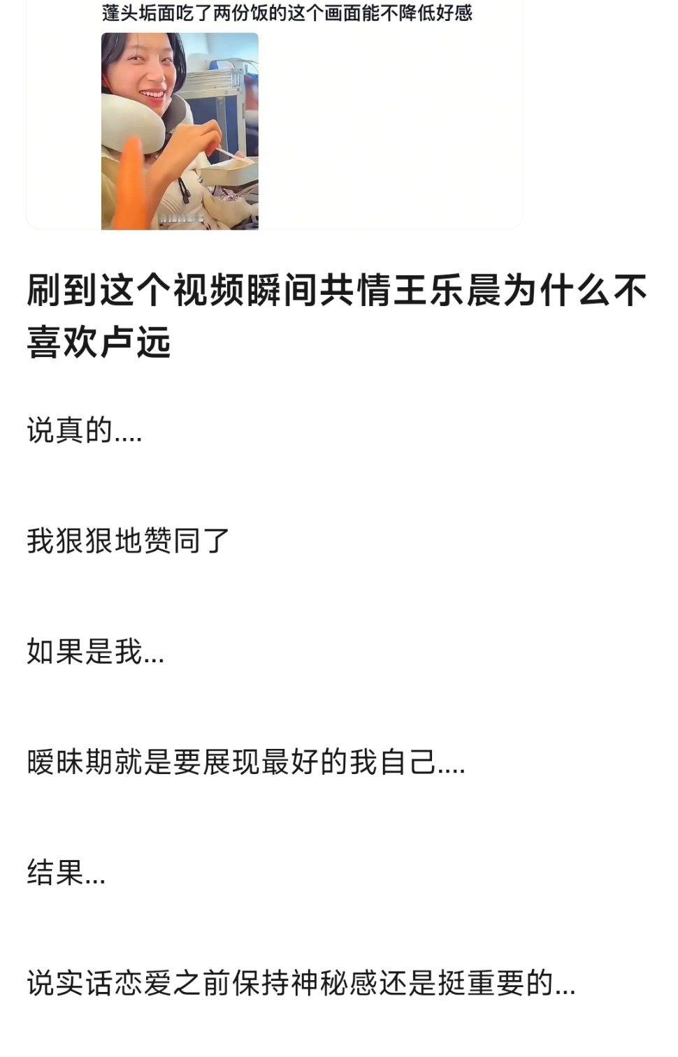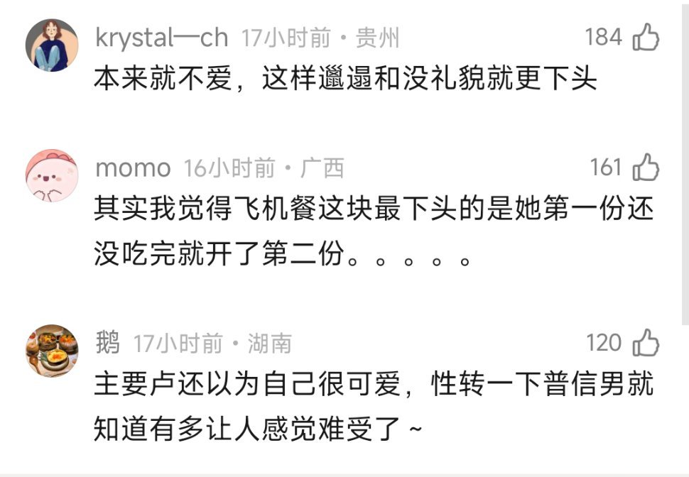 网友分析了王乐晨对卢远下头的原因,没有边界感很邋遢,一个人吃完两份飞机餐,王乐晨开了四五个小时车在飞机上累睡着了醒了发现饭被吃了😂😂好离谱啊啊啊啊啊