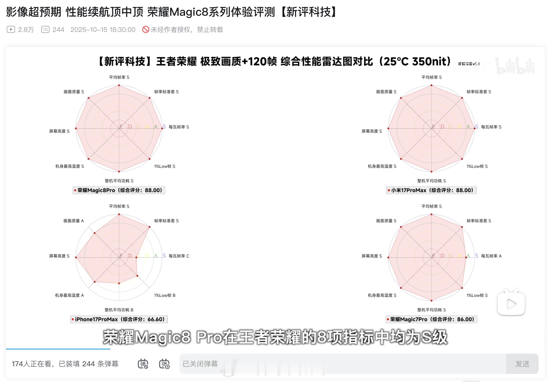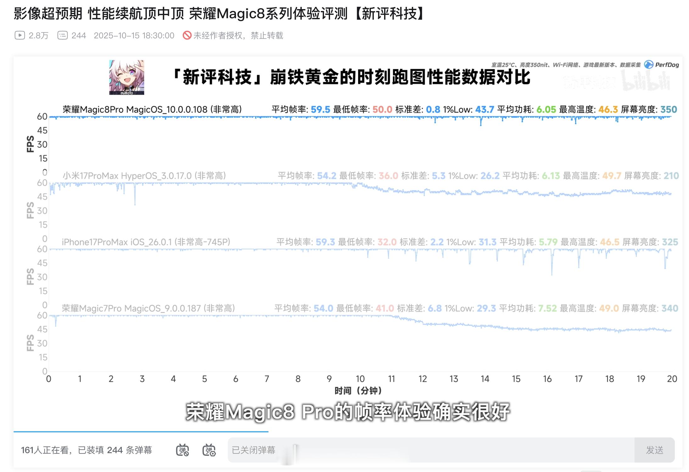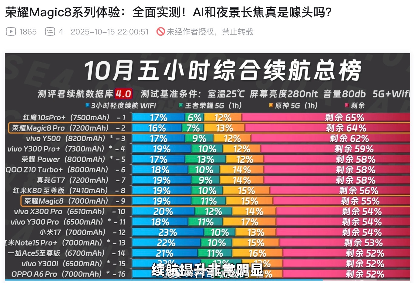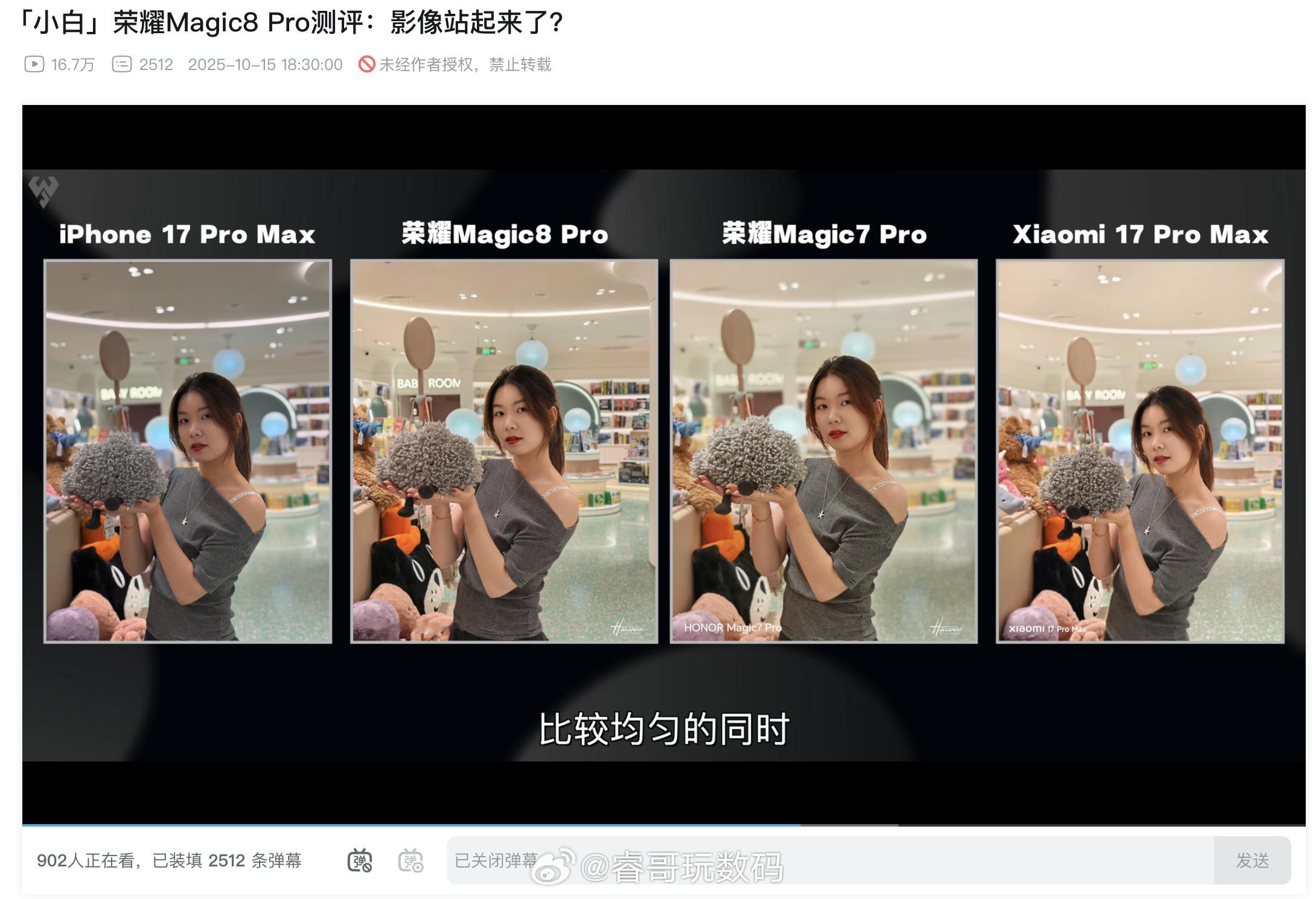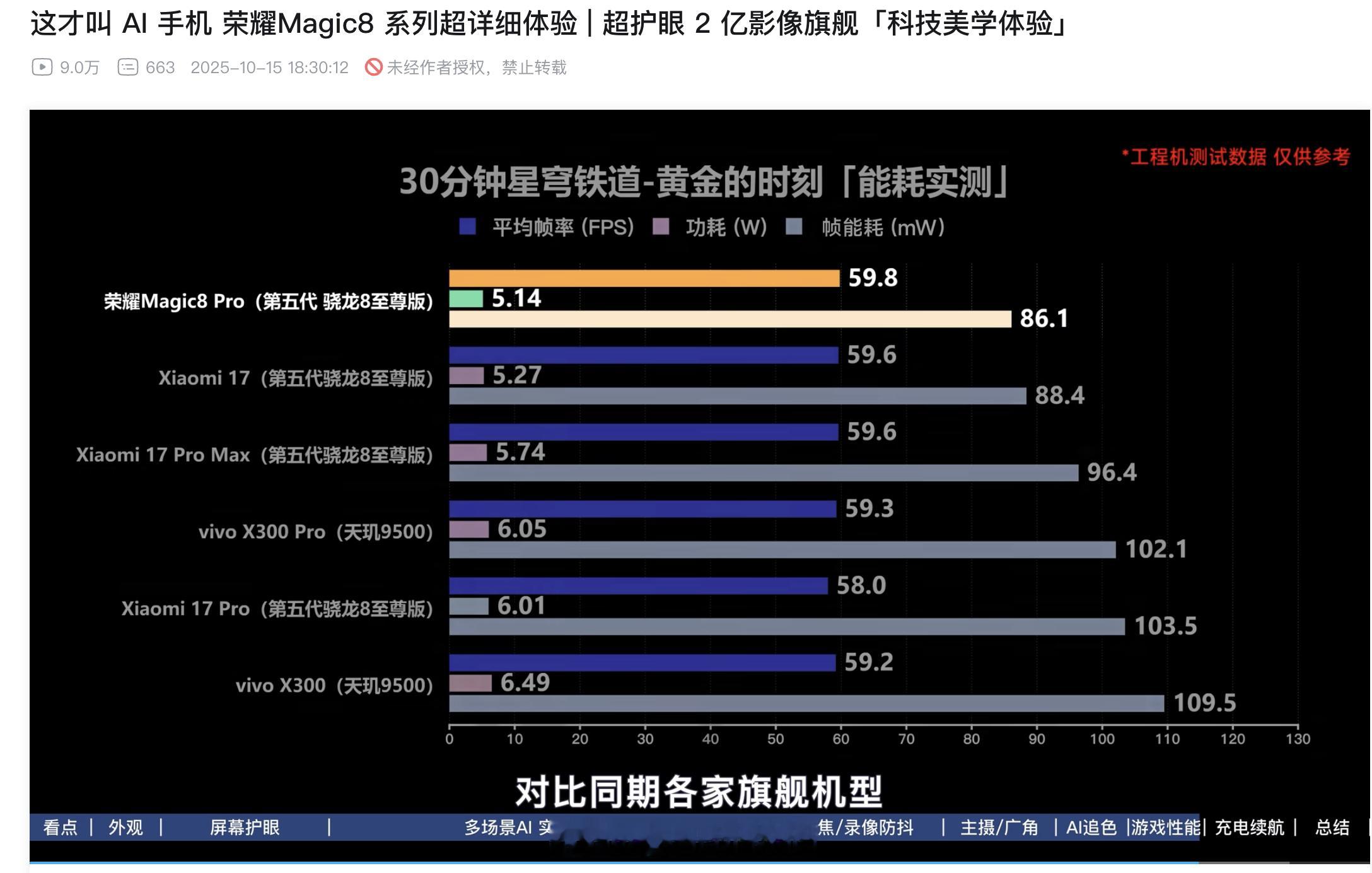 为了更直观的体现荣耀Magic8系列在影像、续航和性能方面的提升,选取了几位知名同行的评测结果,感兴趣的朋友可以仔细看一下[666]