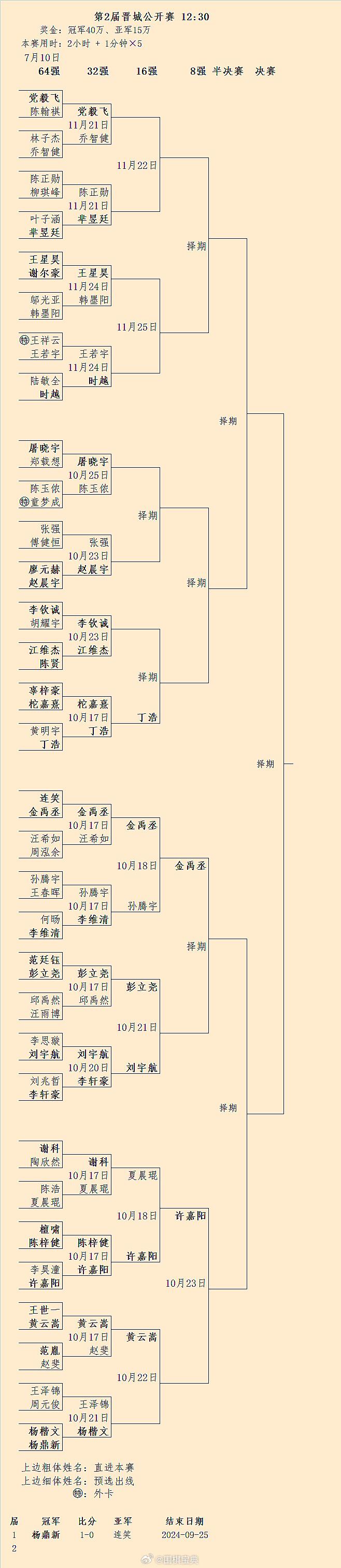 第2届晋城赛20日结果:刘宇航淘汰李轩豪