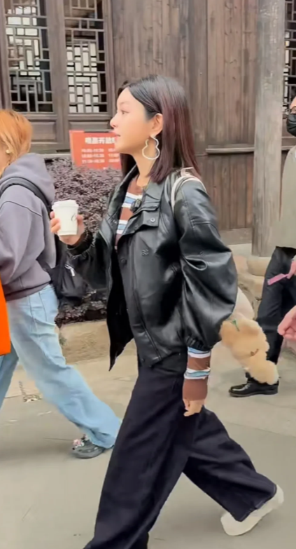 终于看到陈妍希本人了,看她比电视上和视频上年轻多了,皮肤很白,脸上微胖有点肉肉,不像电视看那么圆,很有气质,走路特别快,看着很麻利。 看她几乎素颜,披着长发,大耳环很抢镜,上身穿黑色皮夹克,下配蓝色裤子,脚穿休闲鞋,看着打扮很朴实,左肩挎着包包,包包上还挂着毛绒玩具,看着很是可爱。 看她如今变化越来越大了,以前看她总轻手轻脚的感觉,如今看她性格也变了似的,变得干练大气了,看她自信上来了,给人以焕然一新眼前一亮的感觉。
