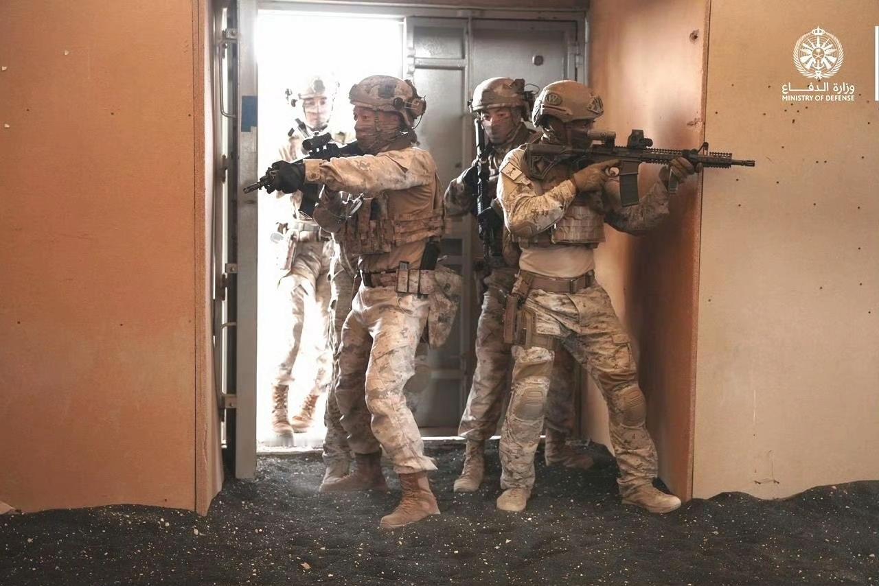 沙特国防部又发布了一组“蓝剑-2025”中沙海军联合训练图。图1挂的是驻吉布提保障基地的臂章,图2可以看到海军臂章。 估计海军这次派去的是两部分人组成的。