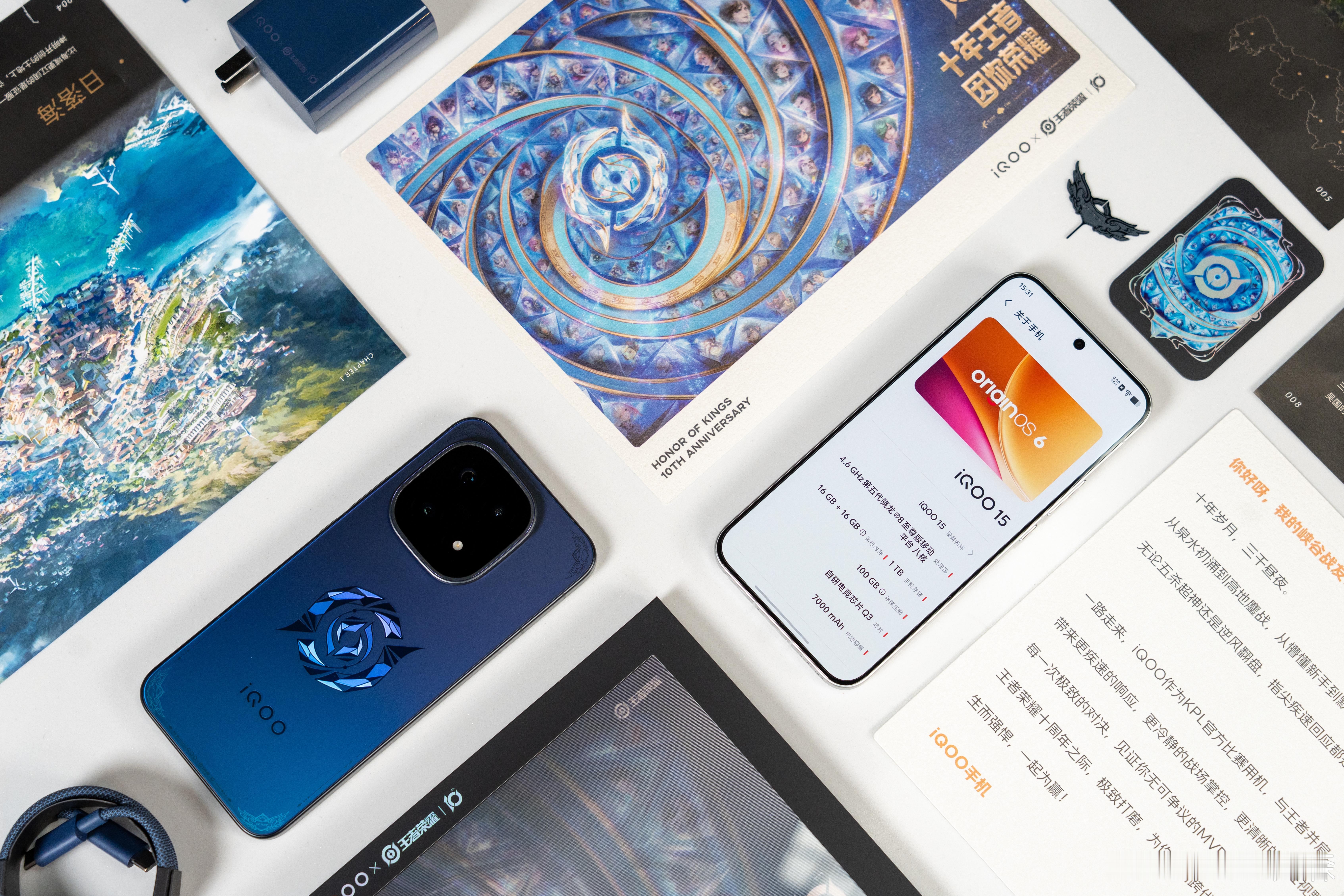 全新iQOO15王者定制机,包括十周年定制配色,手机壳,充电器,数据线,挂件,并且还有联名耳机,以及王者定制UI,全部都是为王者玩家量身定制。