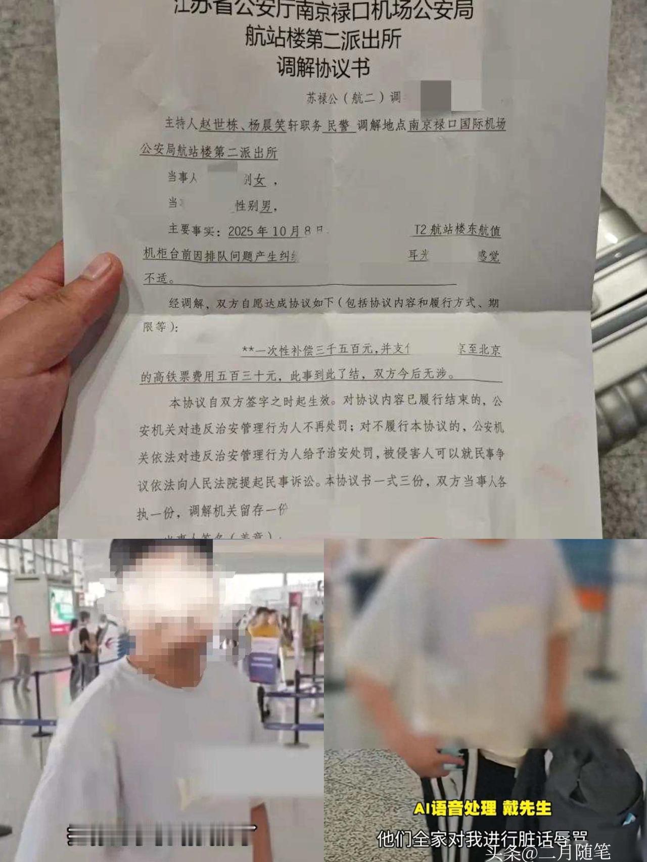 男子因阻止插队被扇耳光! 警方判赔3500元及高铁费用,“听说要赔钱就大哭,她老公低声下气求谅解”,新进展—— 南京机场打人后续: 赔4000块就想了事? 网友炸锅: 这跟鼓励撒泼有啥区别! 友友们! 你们还记得前阵子南京机场那个插队还动手打人的事儿不?后续来了, 但我看完真是气不打一处来! 就那个戴先生, 不过是说了句“请排队”, 好家伙, 对方一家三口直接上行李箱撞人不说, 那女的还甩了人家两巴掌! 结果警方调解下来, 打人的一共就赔了4030块——里头还含了戴大哥的高铁改签费! 最让人无语的是那家人的态度转变: 打人时候嚣张得不行, 一听真要赔钱, 立马低声下气求删视频! 这不就是典型的“动手时当大爷, 赔钱时装孙子”吗? 要我说, 戴大哥坚持不删视频做得太对了! 凭啥你打完人, 花几千块就想抹平? 这根本就不是钱的问题, 是规矩不能这么被踩在脚底下啊! 网上现在也吵翻了, 不少人都在说: 这处罚是不是太“温柔”了点? 你看人家深圳机场, 霸座直接黑名单伺候, 禁乘30天! 南京机场这调解, 简直就像在说“闹一闹没关系, 赔点钱就完事儿”! 说真的, 这种事最可怕的不是一两个人的素质差, 而是规则管不住嚣张的人! 要是每次闹事都能用几千块“和解”, 那以后谁还守规矩? 南航航班打人 暴力赔偿