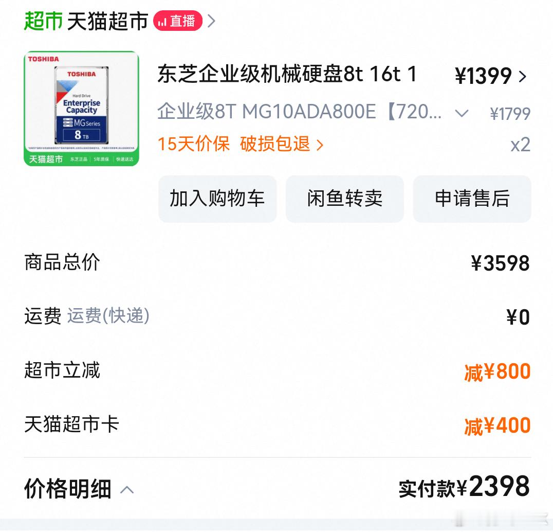 在天猫蹲到了某品牌8T的企业盘硬盘