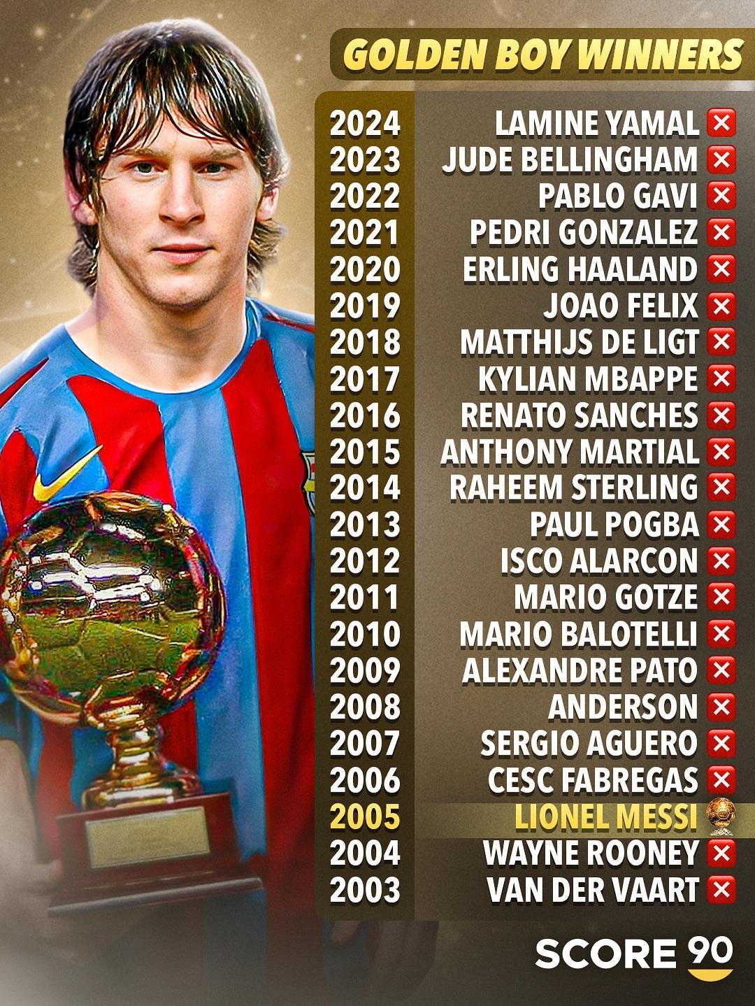 梅西是历史上唯一一位获得过金球奖的金童奖得主😧🏆