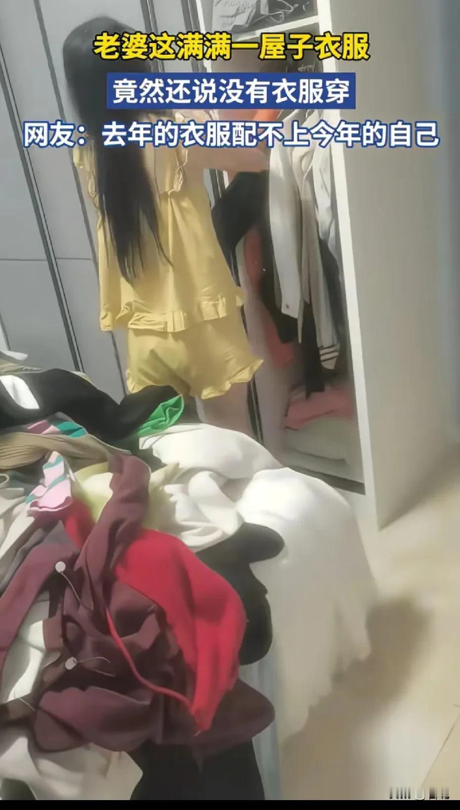 女人的衣橱里永远缺少一件衣服 一老公吐槽老婆这满满一屋子衣服 竟然还说没衣服穿 这大概率就是多数女孩的真实写照吧,每到换季的时候,这种担忧特别明显。 正如网友说的,去年的衣服配不上今年的自己。 但是这衣服也太多了吧,既然不喜欢了,就要及时断舍离,才能腾出空间买更多的新衣服。 视频中的老婆无疑是幸福了,老公虽然吐槽,但是都支持买,不然怎么能打下这一大片江山呢? 话说换季了,你们衣服断舍离了吗?