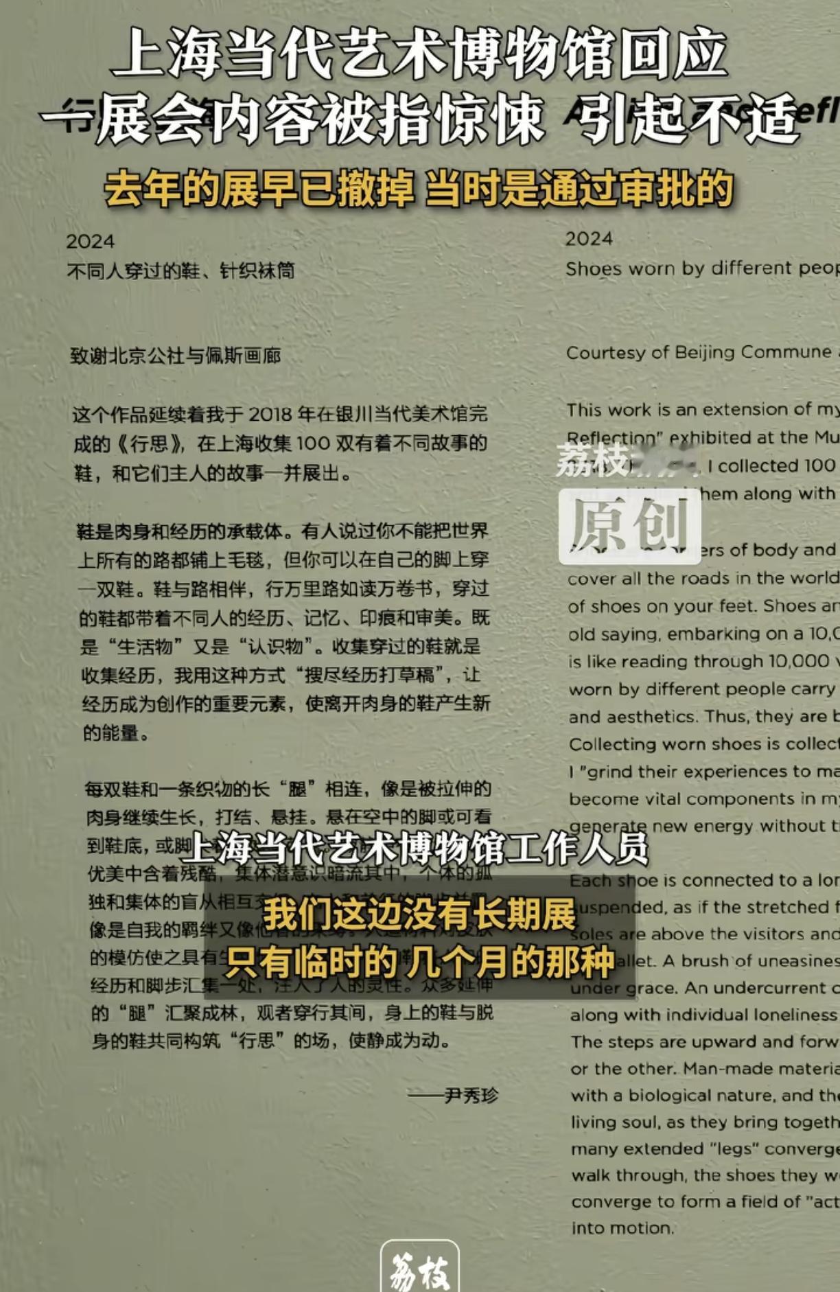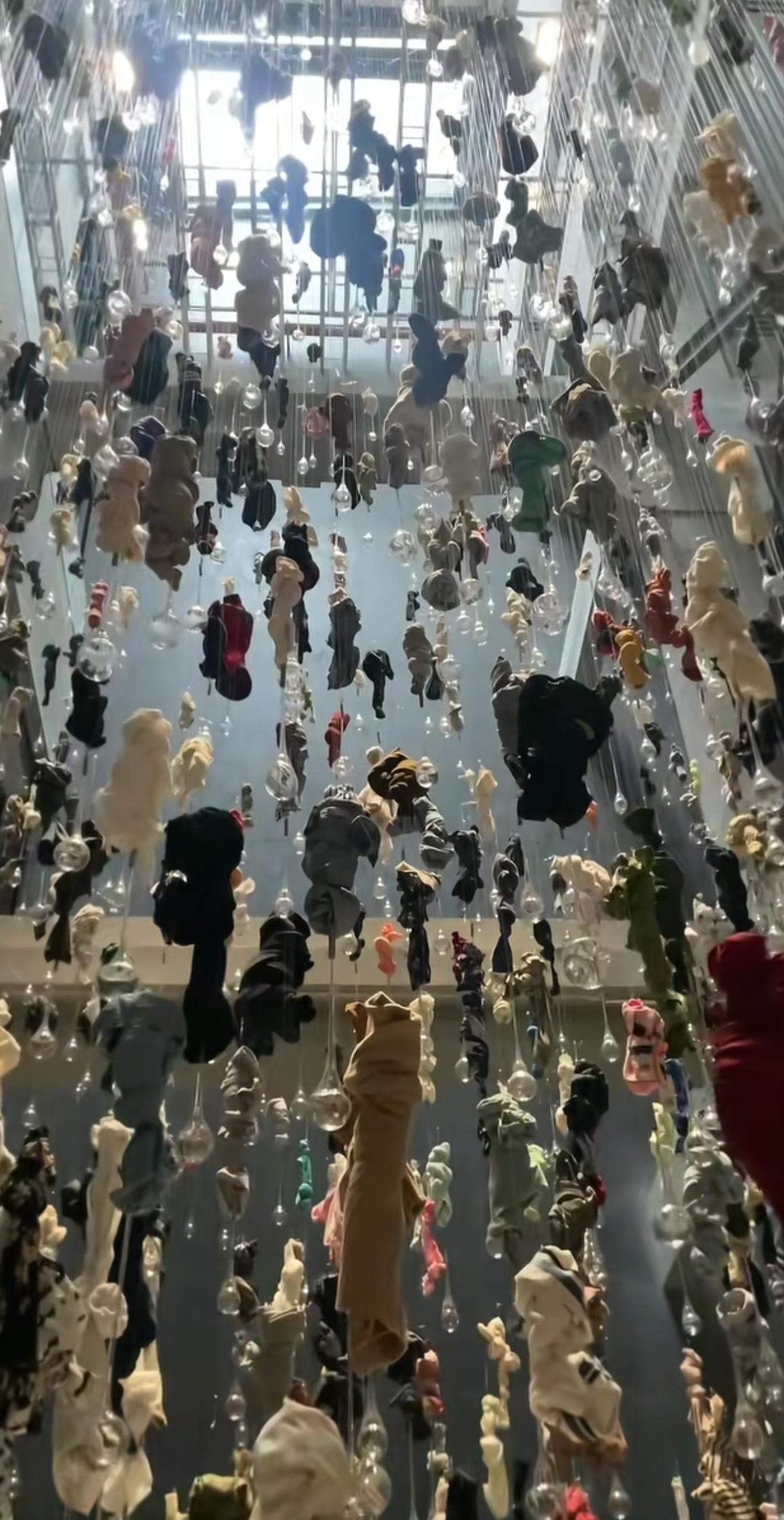 上海某博物馆艺术展令人毛骨悚然,网友都称它为“诡异展”,这不是艺术! 100双有故事的鞋用不同人穿着的针织袜扎着,就那么悬挂在空中,从远处看像不像大肠? 这里面挂着的鞋,有男人的,女人的,老人的,小孩的,哪里来的这么多鞋呢,还都有自己的故事,这个作品的名字还美其名曰“行思”,我是真理解不了也欣赏不来! 这个鹿🦌的这双眼睛,真的有点不敢直视,还有这些悬挂的布娃娃类的,有衣服布料,加上一个灯泡,在漆黑的环境下,谁敢走进去! 面对质疑,工作人员仅仅回复“这是我们博物馆以前的展,现在已经撤展了”,很多网友提出疑问,为什么这样的展能通过审核? 在我看来这不就是所谓的“日本风格”,突然就冒出了好多类似的展,是想向我们传递什么信号呢! 搞不懂怎么会有人爱看这种东西,寻找刺激吗? 上海博物馆 惊悚博物馆 人类抽象博物馆 惊悚艺术展 上海惊悚展