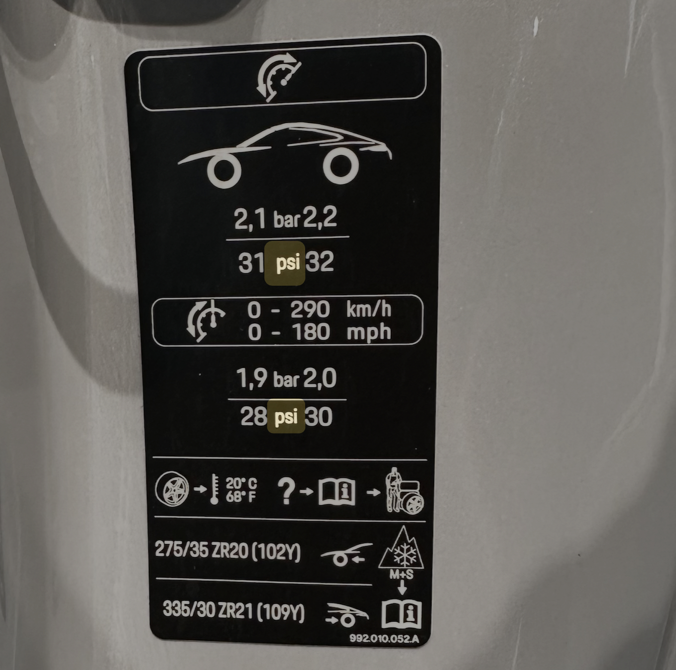 比如 911,会在门柱上写明,这个“冷态”胎压指的是什么温度下所得的