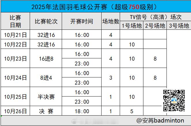 2025年法国羽毛球公开赛首日赛程出炉(图1)完整签表(图2)开赛时间(图3)