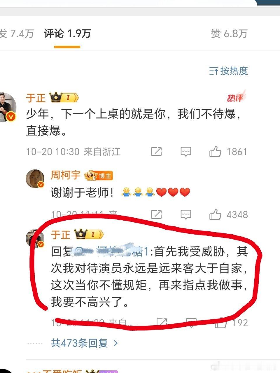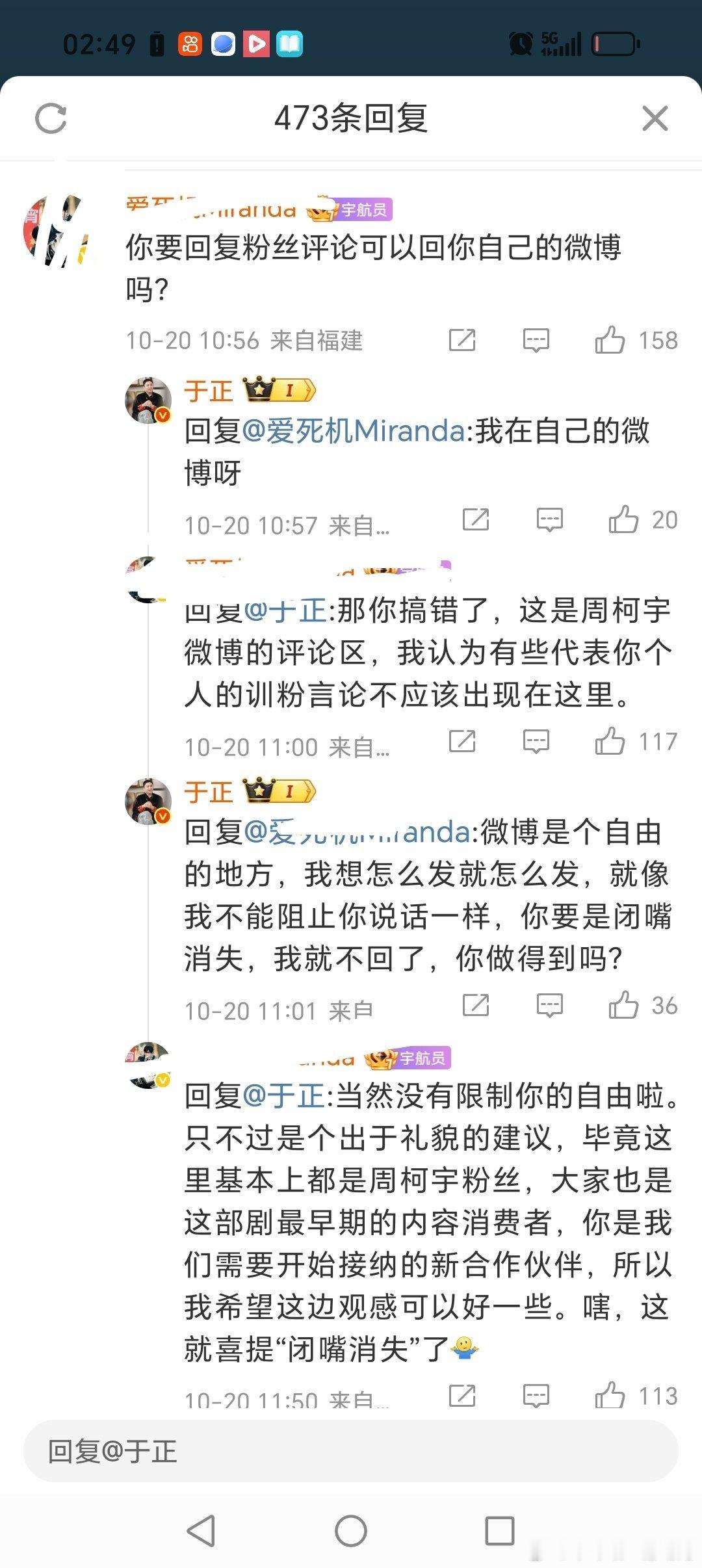 于正在周柯宇微博评论区训斥周柯宇粉丝被“群殴”