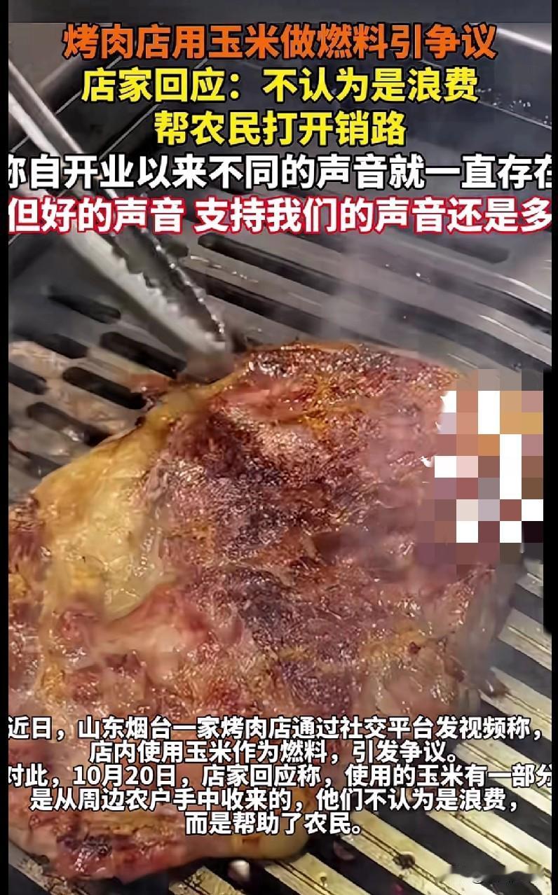 “家人们快看这操作!山东烟台一烤肉店用玉米当燃料烤肉,直接引发争议!有人吐槽这是浪费粮食,店家却霸气回应:‘这不叫浪费,是帮农民打开销路!’原来他们用的玉米是从周边农户手里收的,开业后虽然有不同声音,但支持的人更多。 咱就是说,一边是滋滋冒油的烤肉烟火气,一边是帮农民卖玉米的暖心举动,这波操作你怎么看?是觉得有点浪费,还是认可这种帮农户找销路的方式?评论区快来说说你的想法!”