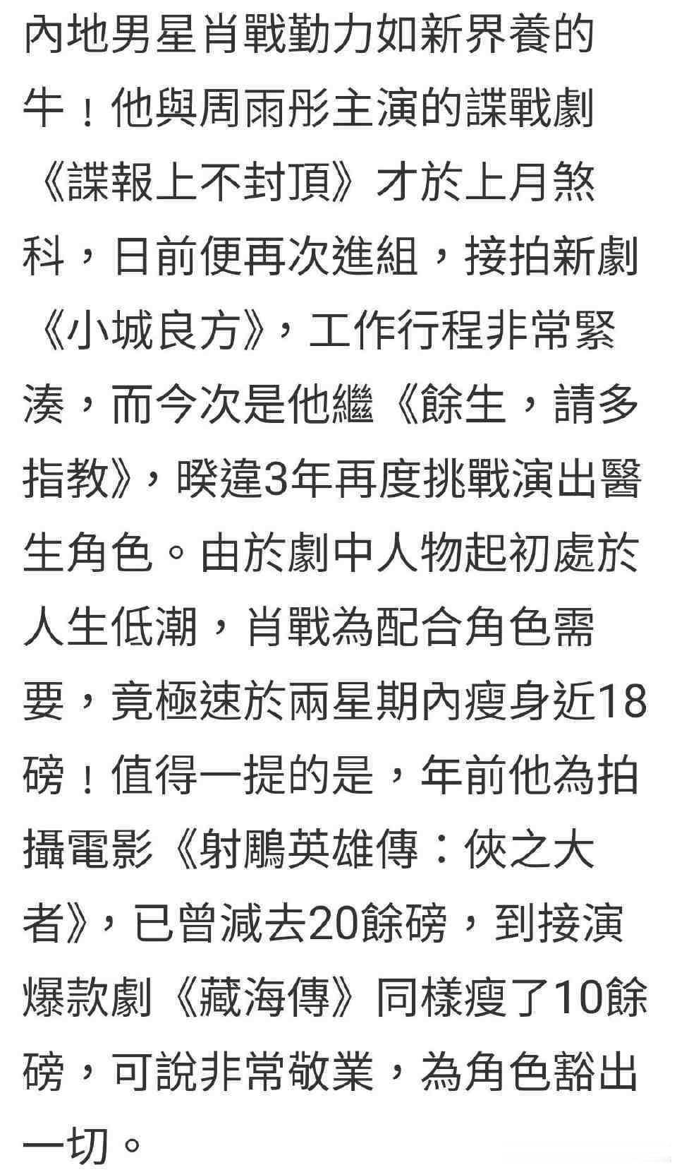港媒:肖战炙手可热!两星期内瘦身近18磅!