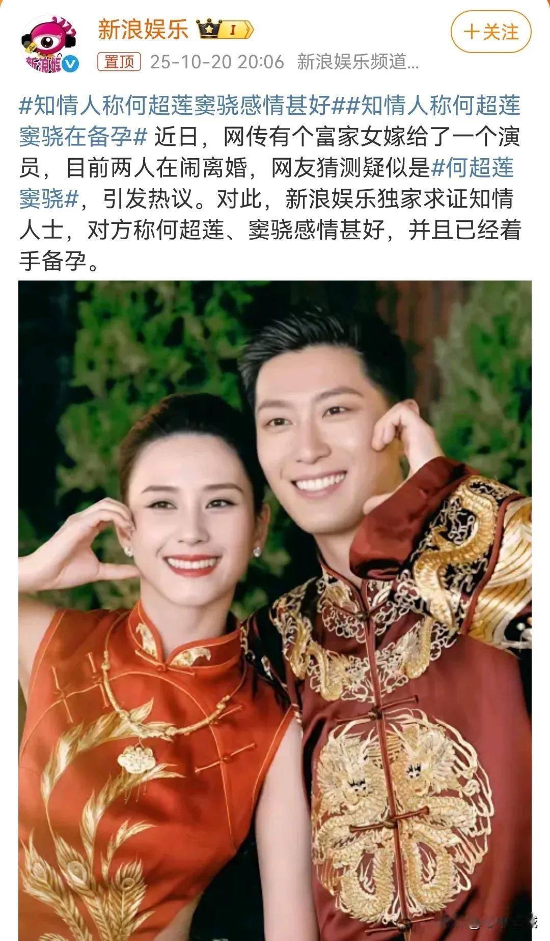 知情人透露,此前网传闹分手、分家产的小两口实际关系很好,正积极备孕,相关传言子虚