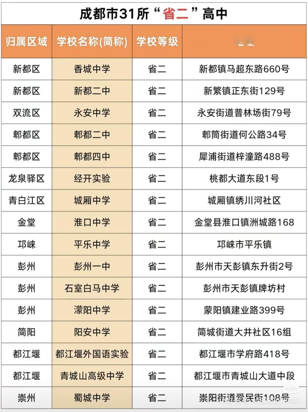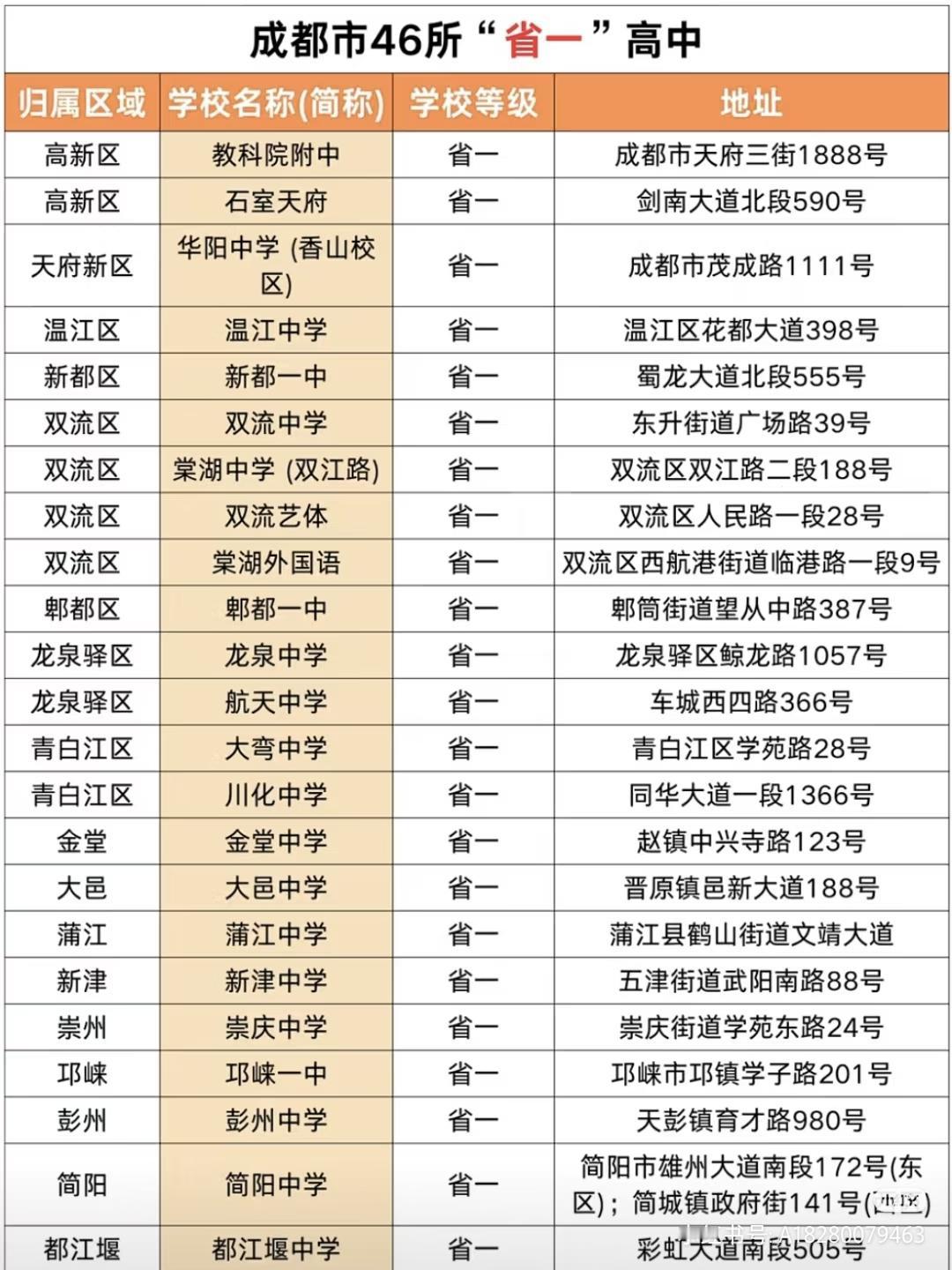 省一46所,省二31所,成都重点高中全览! 许多家长在选择高中学校时,都会注意