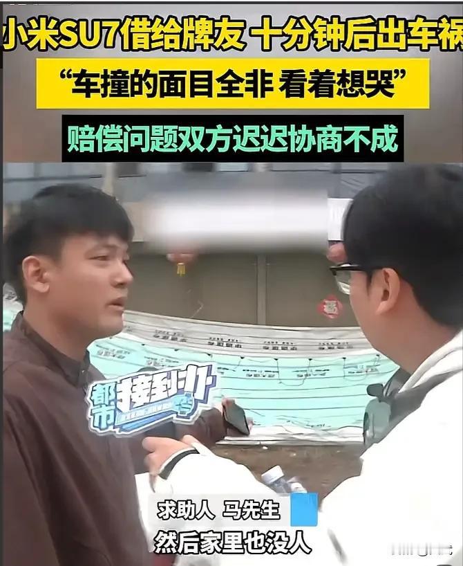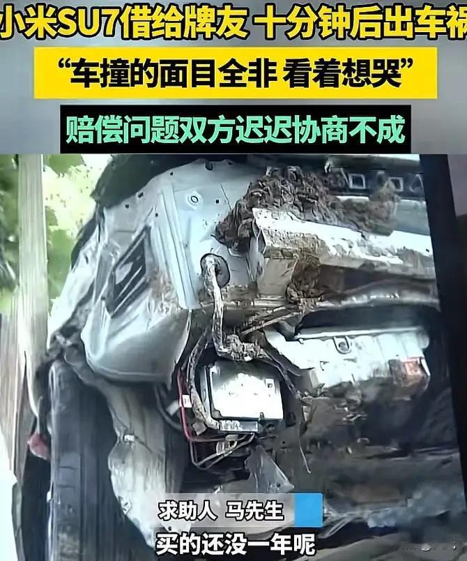 “刚买不到一年的小米SU7,借出去十分钟就被撞得面目全非!”马先生说起这事,心疼